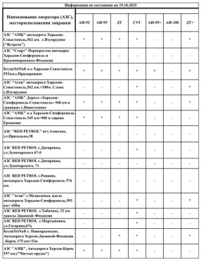 Уважаемые алуштинцы! Важная информация о наличии топлива в нашем муниципалитете по состоянию на 08:20 19.10.2025.#Алушта #ГалинаОгнёва #АдминистрацияАлушты