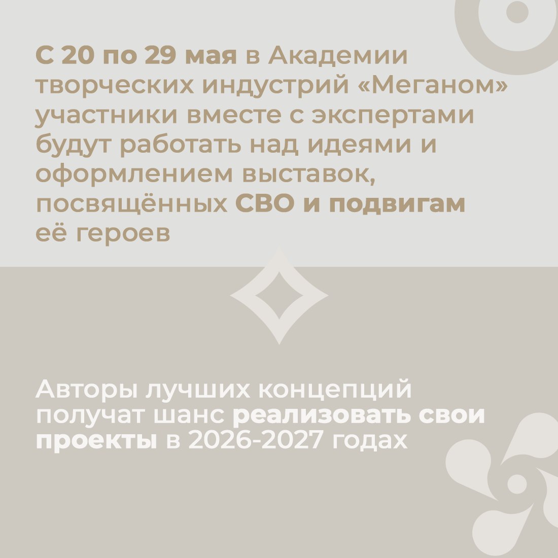 Если у вас есть идея оформления такой выставки, регистрируйтесь на образовательную программу «#СВОиМУЗЕИ», которая пройдёт с 20 по 29 мая в Академии творческих индустрий «Меганом». Лучшие проекты будут созданы на площадках партнёров.