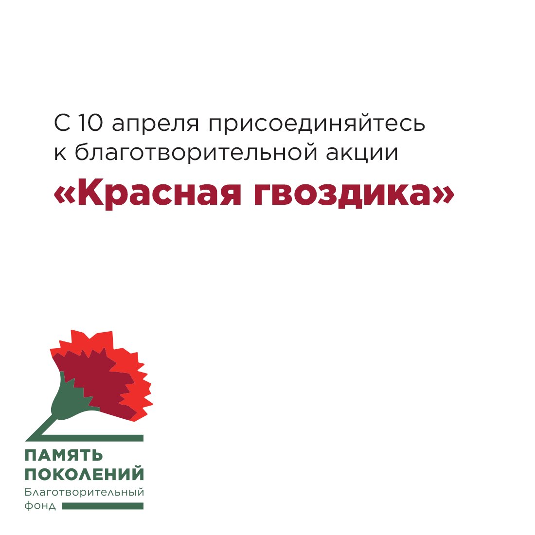 С 10 апреля по 22 июня пройдёт ежегодная всероссийская акция «Красная гвоздика»