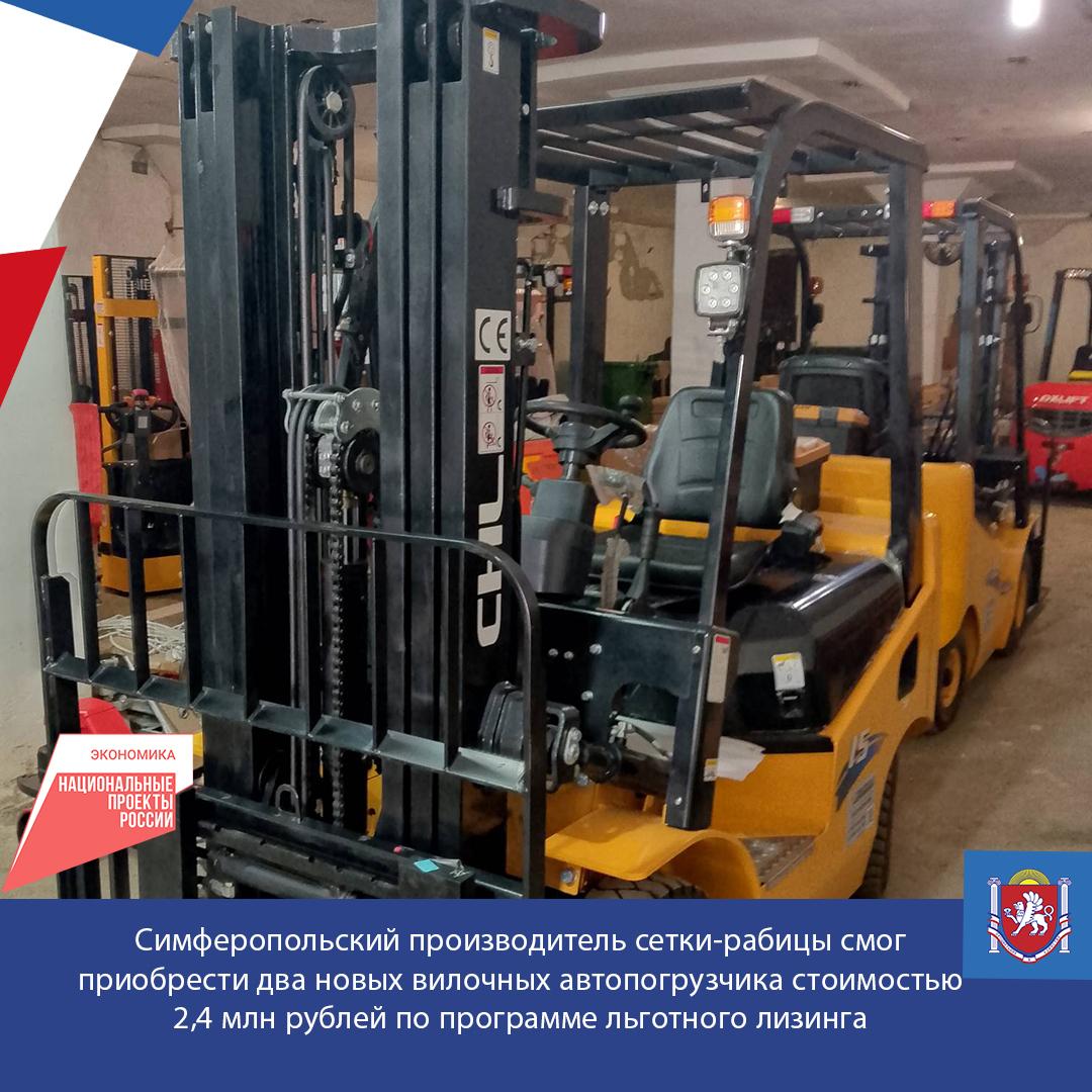 Симферопольский производитель сетки-рабицы смог приобрести два новых вилочных автопогрузчика стоимостью 2,4 млн рублей по программе льготного лизинга.