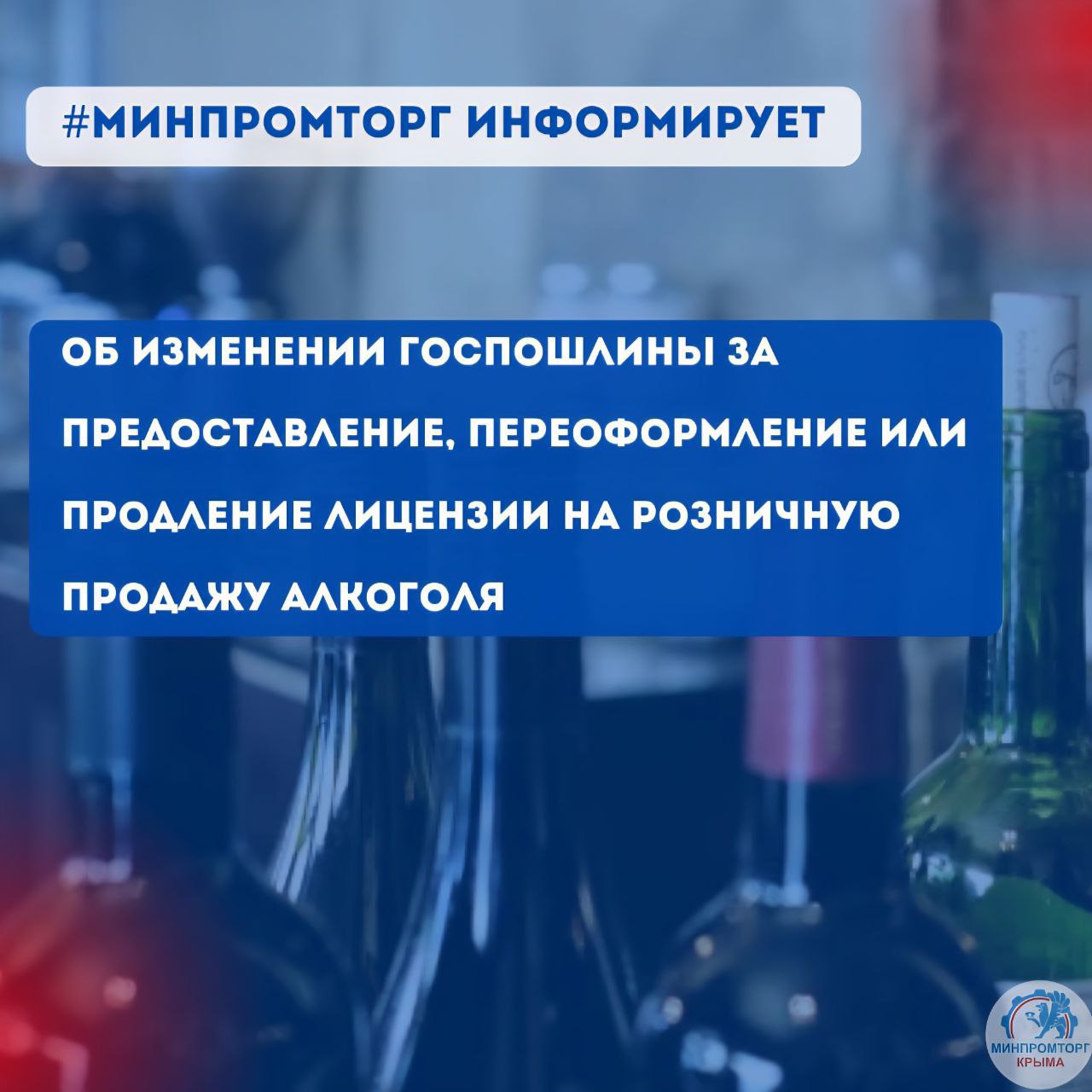 Минпромторг Крыма напоминает об изменениях в Налоговом кодексе РФ, касающихся размера госпошлины, связанной с лицензированием розничной продажи алкогольной продукции