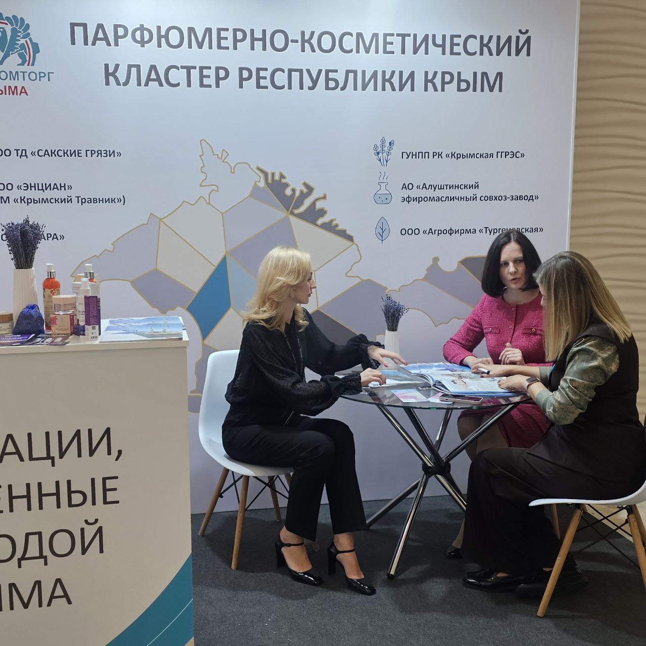 Стенд Республики Крым пользовался большим интересом среди гостей и участников выставки. В рамках посещения экспозиций выставки с достижениями крымской промышленности и перспективными проектами в сфере развития косметической отрасли региона ознакомился Первый заместитель Председателя Правительства Российской Федерации Денис Мантуров.