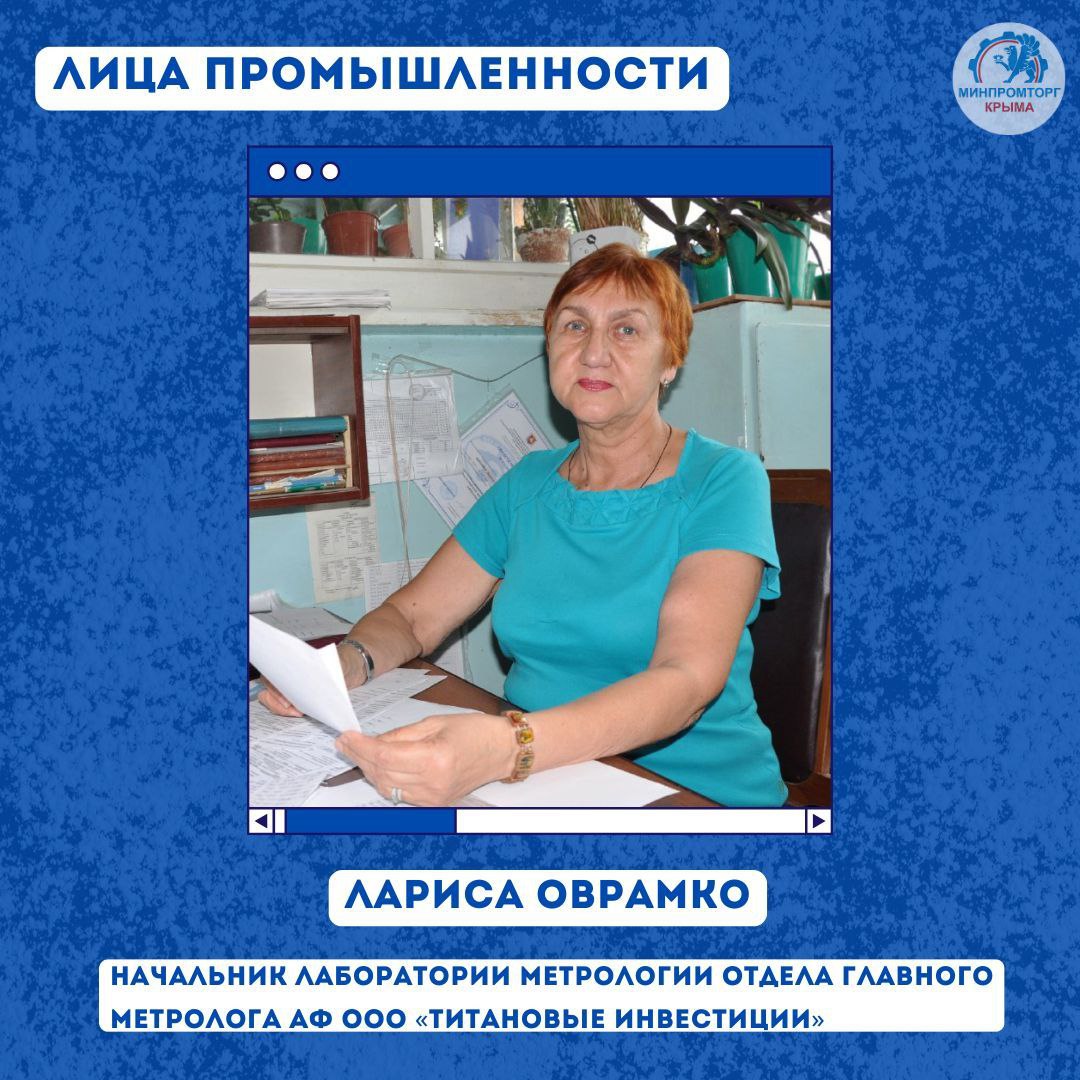 Лица крымской промышленности: Лариса Оврамко –  начальник лаборатории метрологии отдела главного метролога АФ ООО «Титановые Инвестиции»