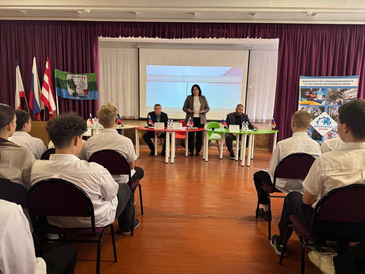 Заместитель министра промышленности и торговли Республики Крым Ирина Фролова провела для школьников увлекательную и содержательную лекцию, посвященную возможностям карьерного роста в промышленной сфере региона.