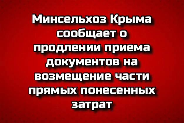 Минсельхоз Крыма объявляет о продлении приема документов на возмещение части прямых понесенных затрат на создание и (или) модернизацию объектов агропромышленного комплекса, а также на приобретение и ввод в промышленную эксплуатацию маркировочного оборудования для внедрения обязательной маркировки отдельных видов молочной продукции