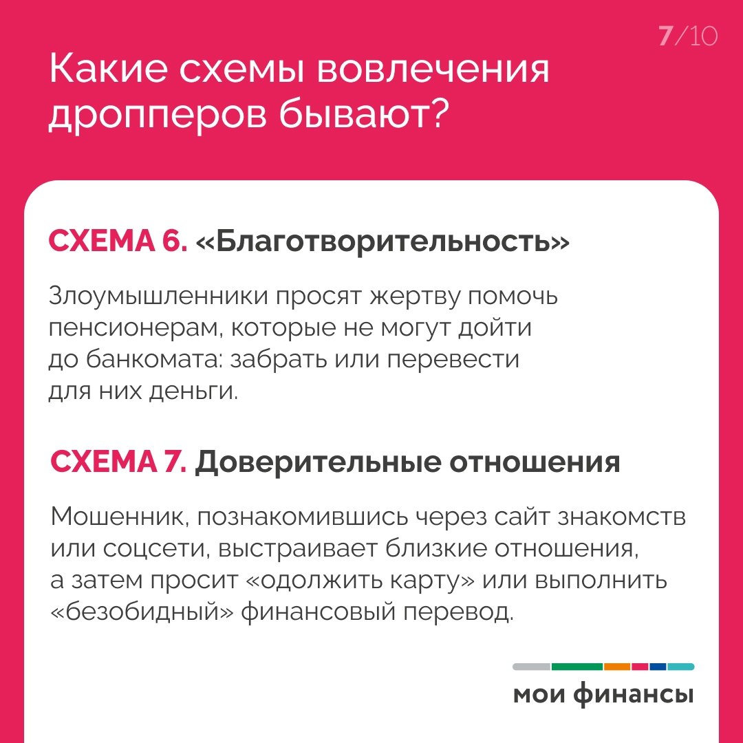 Дроппер — это человек, который участвует в мошеннических схемах, предоставляя свои банковские реквизиты для обналичивания или перевода похищенных средств. Дропперы могут быть как осознанными участниками, так и неосознанными жертвами мошенников.