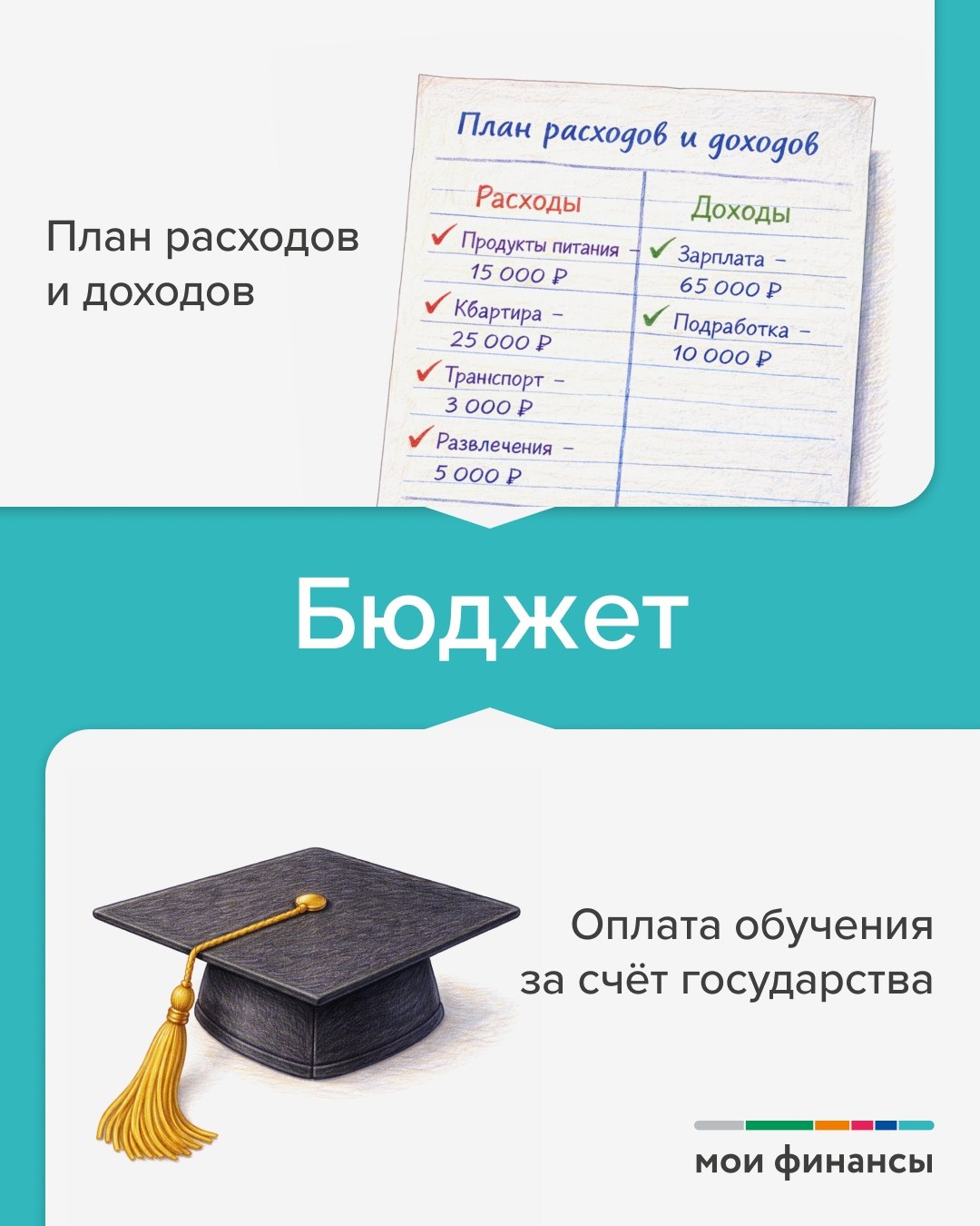 Портал «Моифинансы.рф» подготовил 9 карточек с понятными объяснениями, которые подойдут в качестве дополнения на занятиях в 5-7 классах.