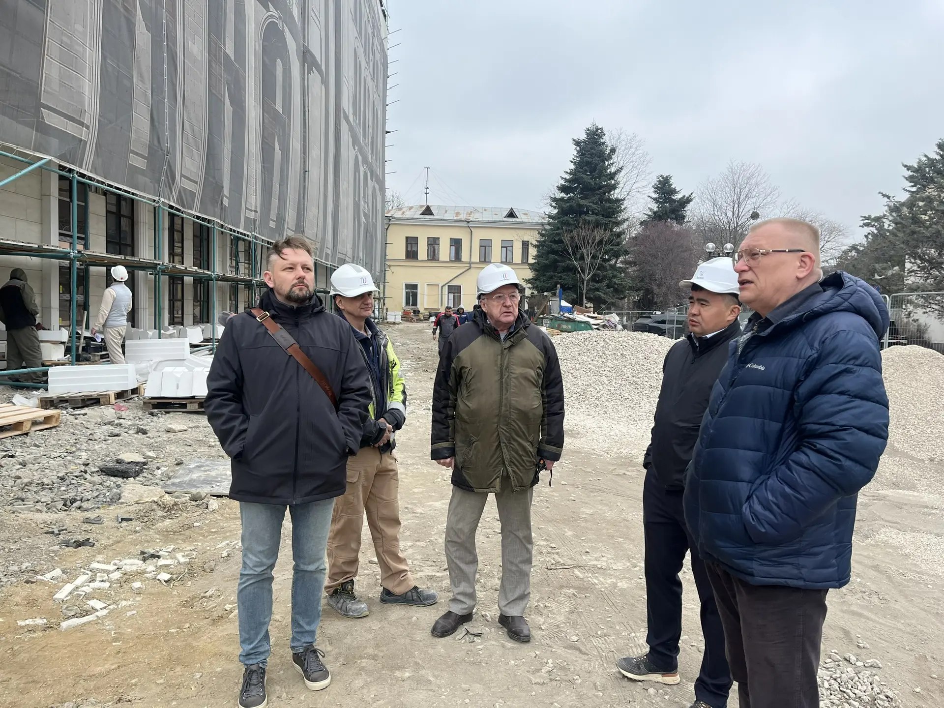 Министр строительства и архитектуры Республики Крым Эдуард Щёголев провел рабочее совещание на строительстве Крымского государственного детского центра театрального искусства.