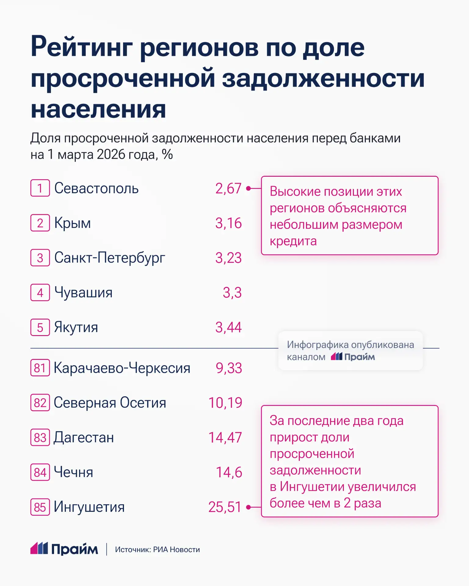Ингушетия стала антилидером среди российских регионов по доле просроченной задолженности перед банками