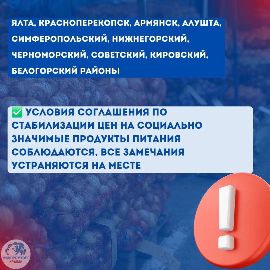 Минпромторг Крыма на постоянной основе проводит мониторинг соблюдения условий Соглашения по стабилизации цен на социально значимые продукты.