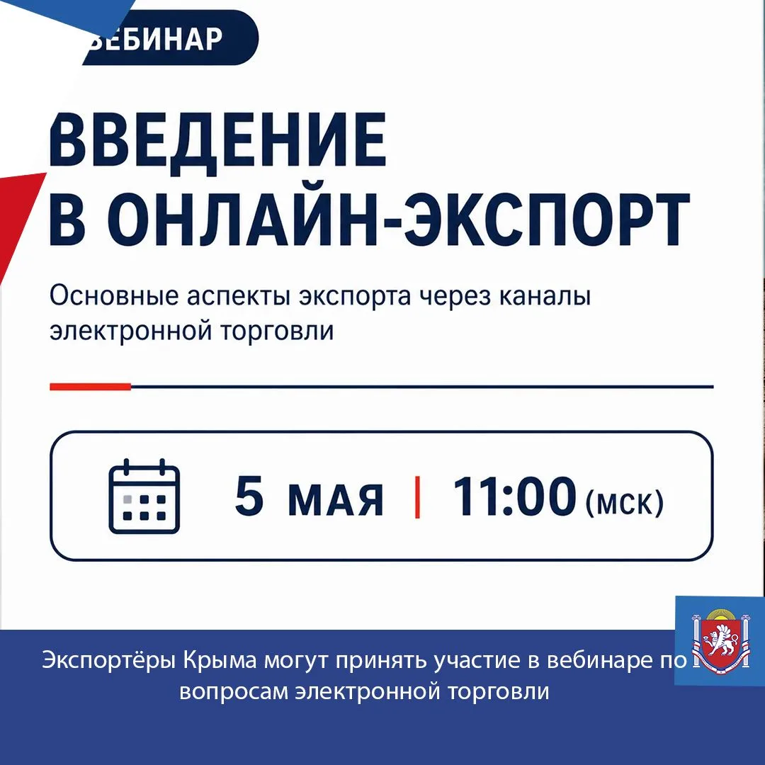 Мероприятие пройдёт 5 мая на онлайн-платформе Российского экспортного центра. Начало в 11:00. Ссылка для регистрации: https://www.exportcenter.ru/events/843268/