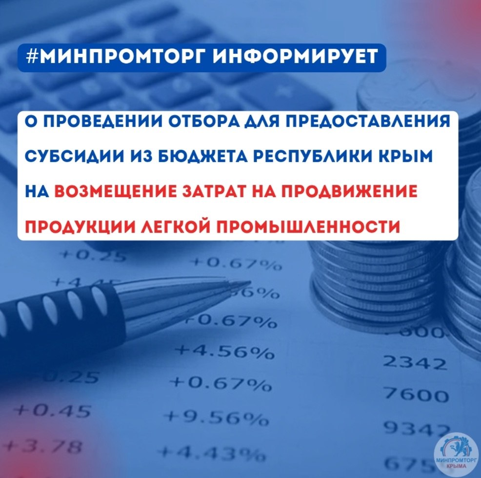 Минпромторг Крыма объявляет о начале отбора на предоставление субсидий из бюджета Республики Крым для предприятий лёгкой промышленности