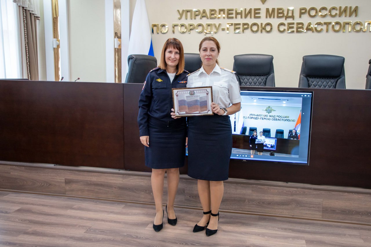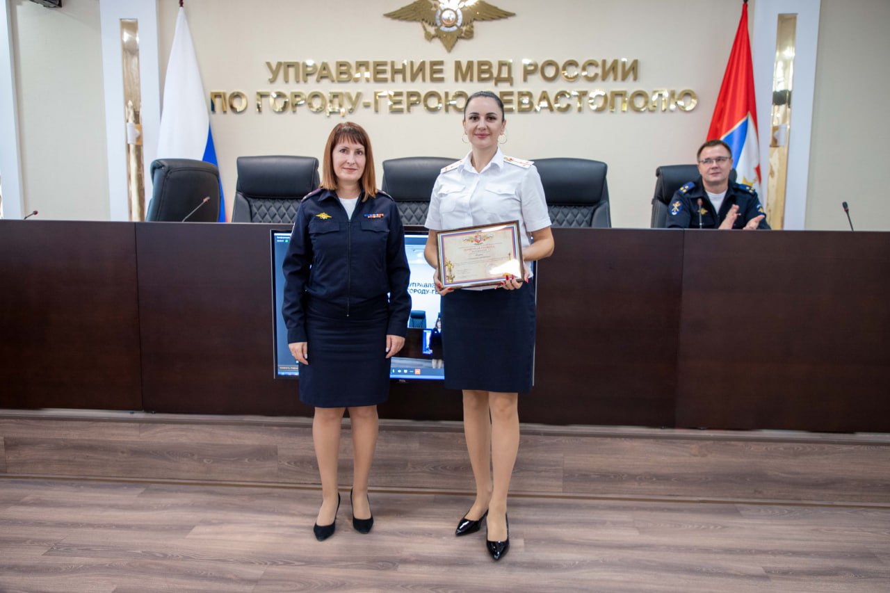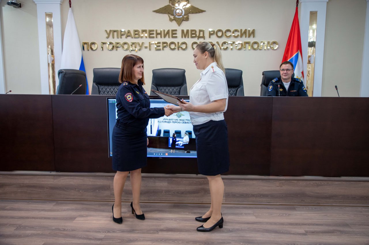 За высокие достижения в служебной деятельности отличившимся сотрудникам полковник полиции Жанна Данилина вручила ведомственные награды – Почётные грамоты УМВД России по г. Севастополю и Благодарности начальника УМВД.
