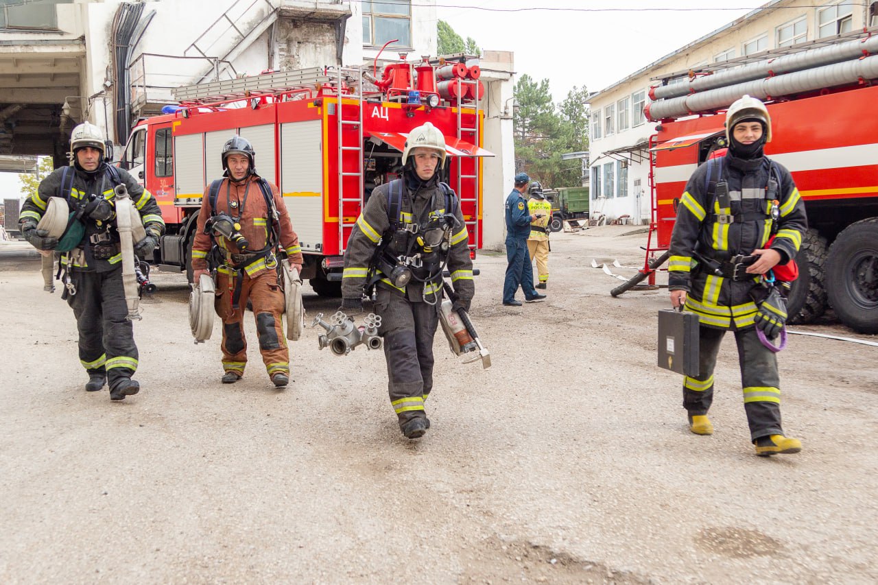 Симферопольский местный пожарно-спасательный гарнизон провёл пожарно-тактические учения с боевым развёртыванием сил и средств опорного пункта тушения пожаров и проведения аварийно-спасательных работ на объекте производства.