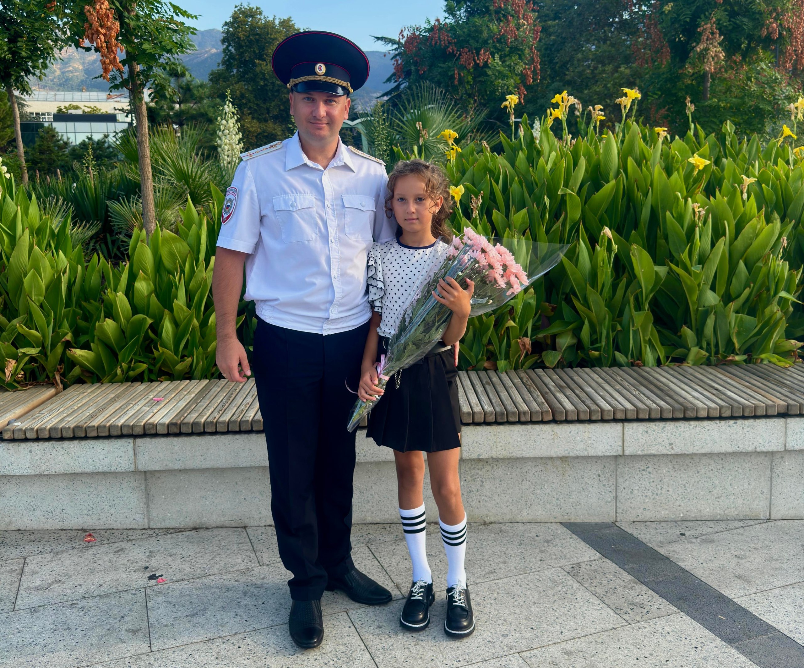 На фото изображен старший специалист группы материально-технического обеспечения отдельной роты патрульно-постовой службы полиции УМВД России по г.Ялте, капитан полиции Денис Гулевский вместе с дочерью Надеждой.