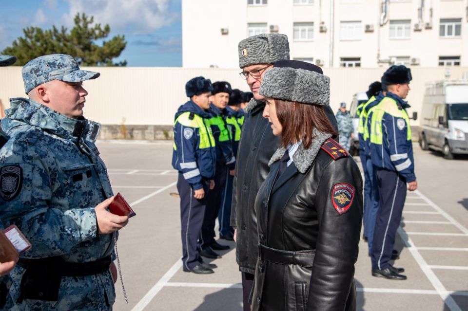 В ходе основной части мероприятия врио начальника УМВД России по г.Севастополю Владислав Уткин вместе с руководителями строевых подразделений побеседовали с правоохранителями, проверили готовность личного состава к выполнению служебных задач в зимний период.