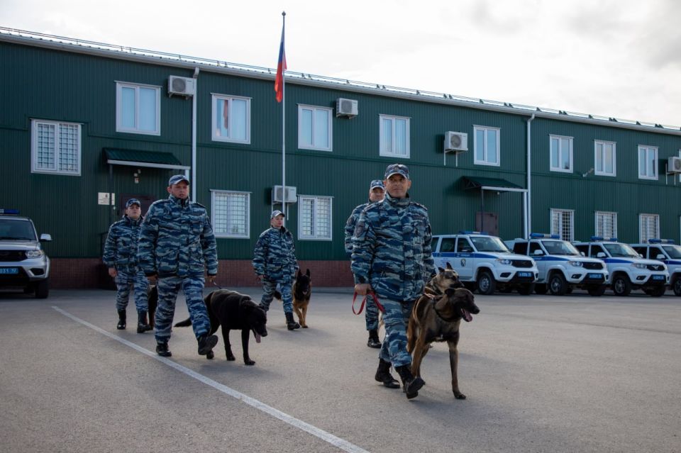 На плацу выстроились сотрудники патрульно-постовой службы полиции отделов МВД России по районам города, полицейские отдельного батальона ППСП имени Василия Бузина, отдельной специализированной роты ДПС Управления Госавтоинспекции и кинологи со служебными собаками.