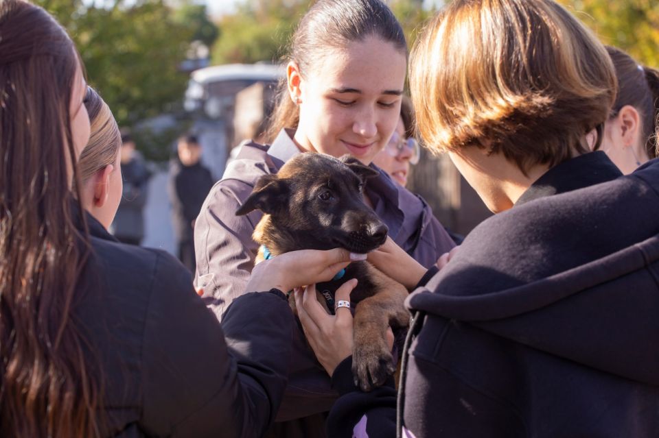 Но самый трогательный эпизод — знакомство с будущим поколением защитников порядка. Щенки бельгийской и немецкой овчарок — Линда, Зима, Агна, Квеста и Кайрат — впервые показали свои навыки и подарили ребятам радость общения: дети смогли погладить и поиграть с этими пушистыми малышами, что вызвало настоящий восторг.