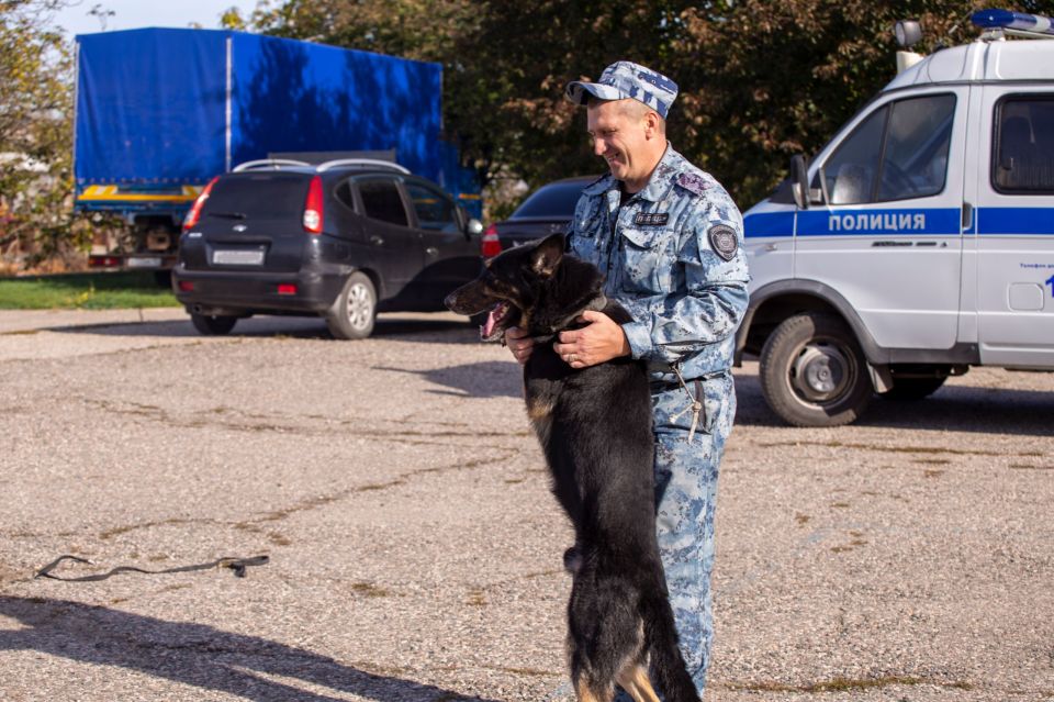 Не менее впечатляющим было выступление второго кинологического расчета. Пес по кличке Зет который под контролем начальника отделения ЦКС майора полиции Николая Першина, провел безупречный поиск и безошибочно обнаружил все условные наркотические вещества.