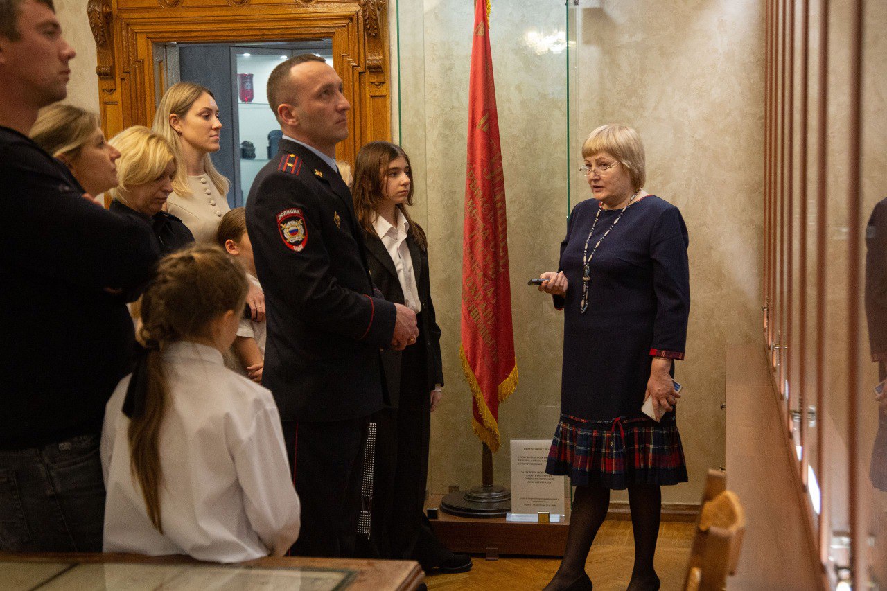Помощник Министра внутренних дел по Республике Крым, полковник внутренней службы в отставке Инна Никитина провела экскурсию по постоянно действующей экспозиции для детей и их родителей.