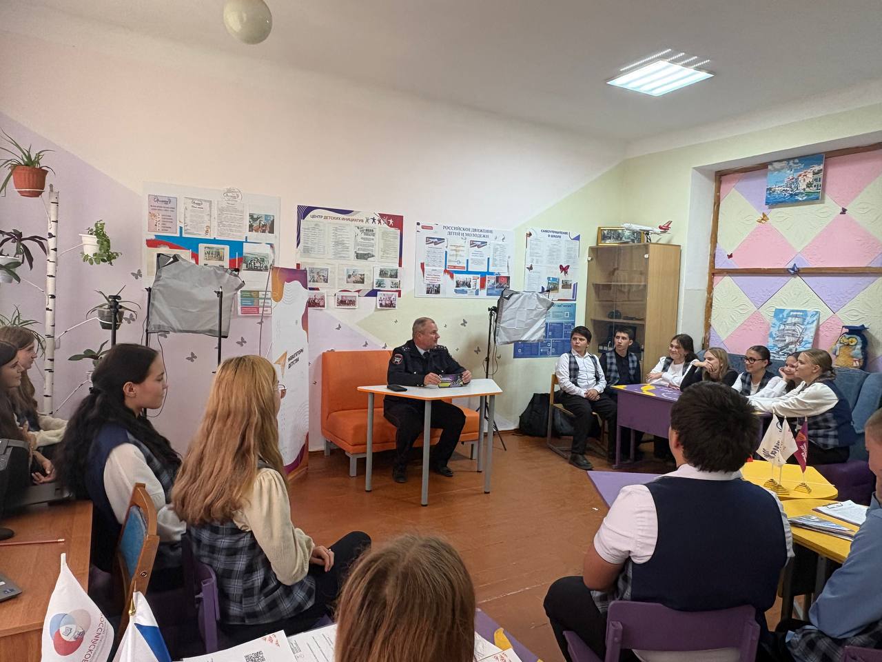 Так,инспектор по пропаганде безопасности дорожного движения Госавтоинспекции ОМВД России по Первомайскому району капитан полиции Олег Ушарук провел встречу с президентом, министрами и членами ученического самоуправления МБОУ «Гвардейская школа», где обсудил с ними основным элементы дальнейшего взаимодействия в профилактике травматизма на дорогах.