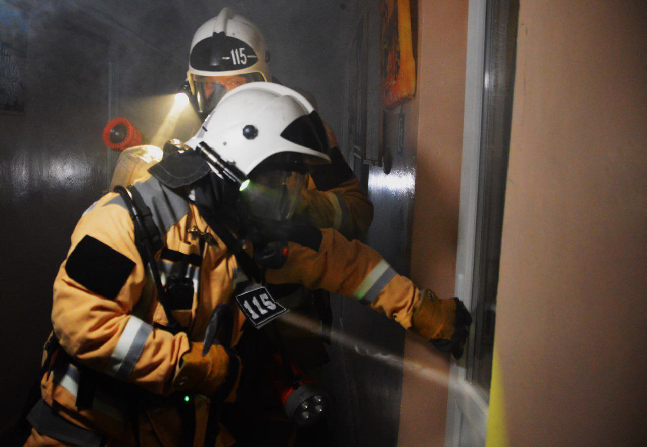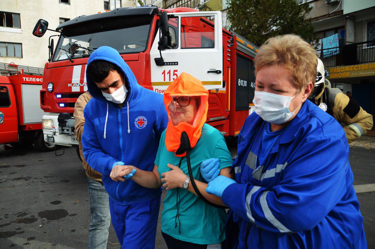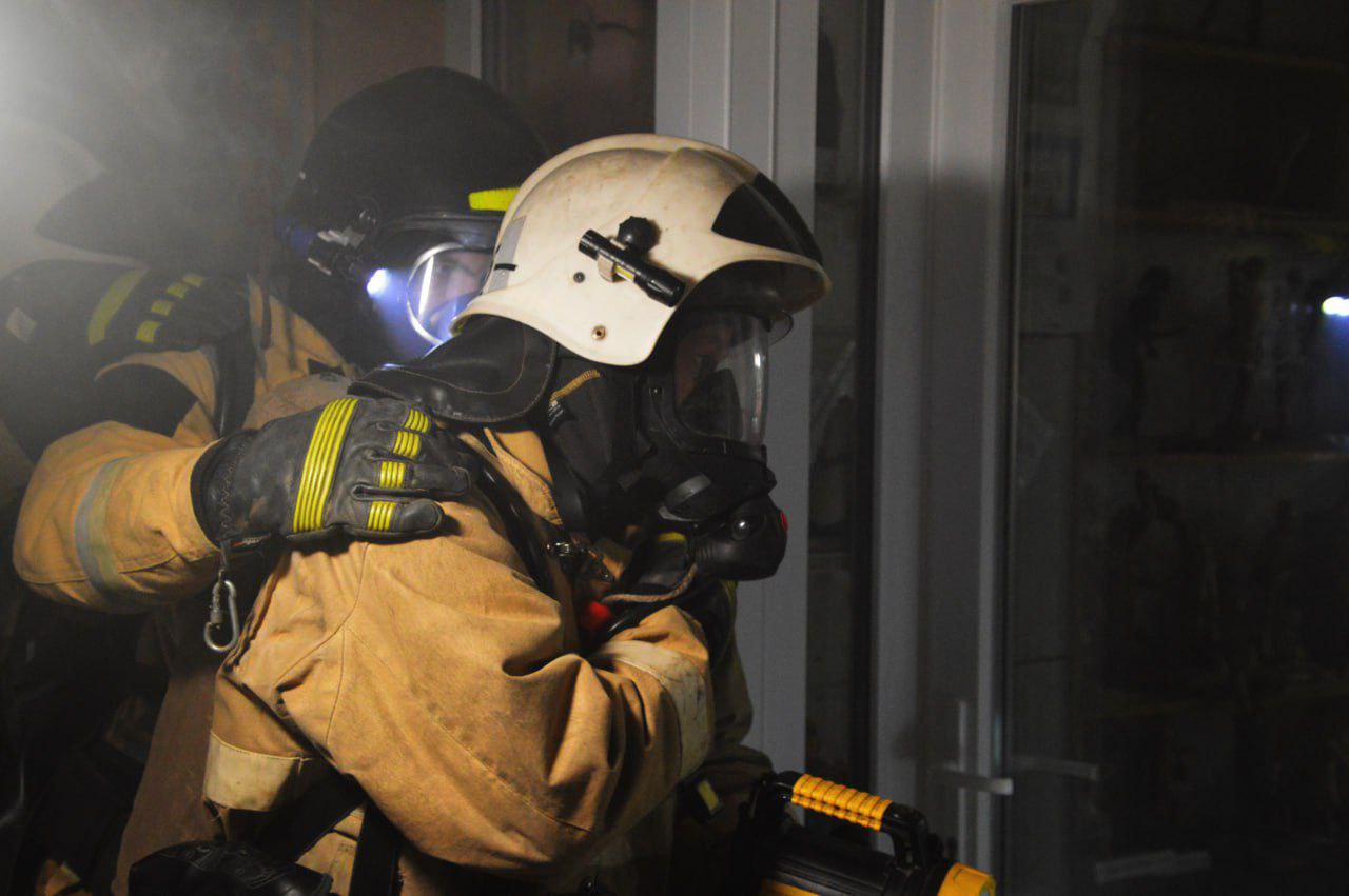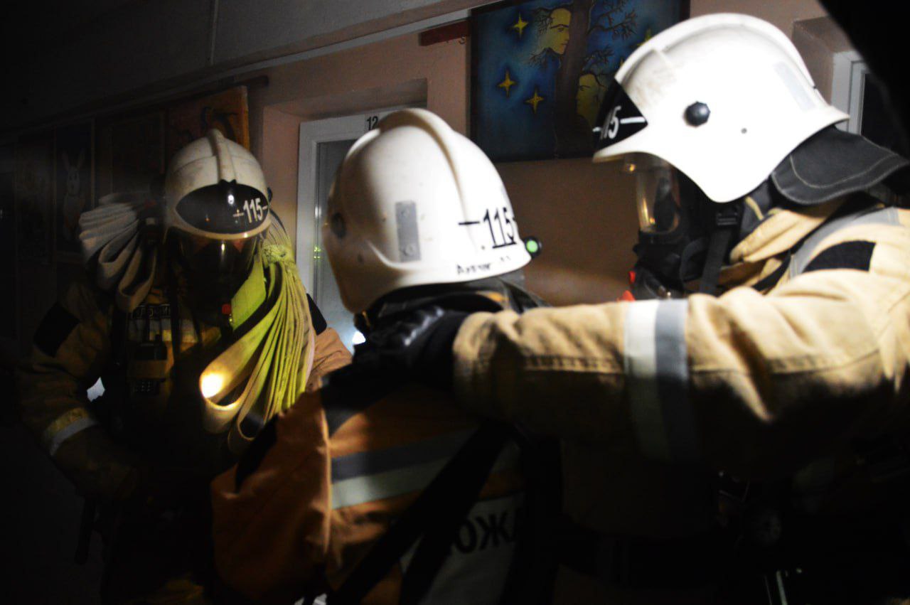 Одно звено газодымозащитной службы провело разведку задымленного помещения и оперативно обнаружило пострадавших. Огнеборцы надели на них капюшоны для спасаемых и эвакуировали из здания, после чего передали в карету скорой помощи.