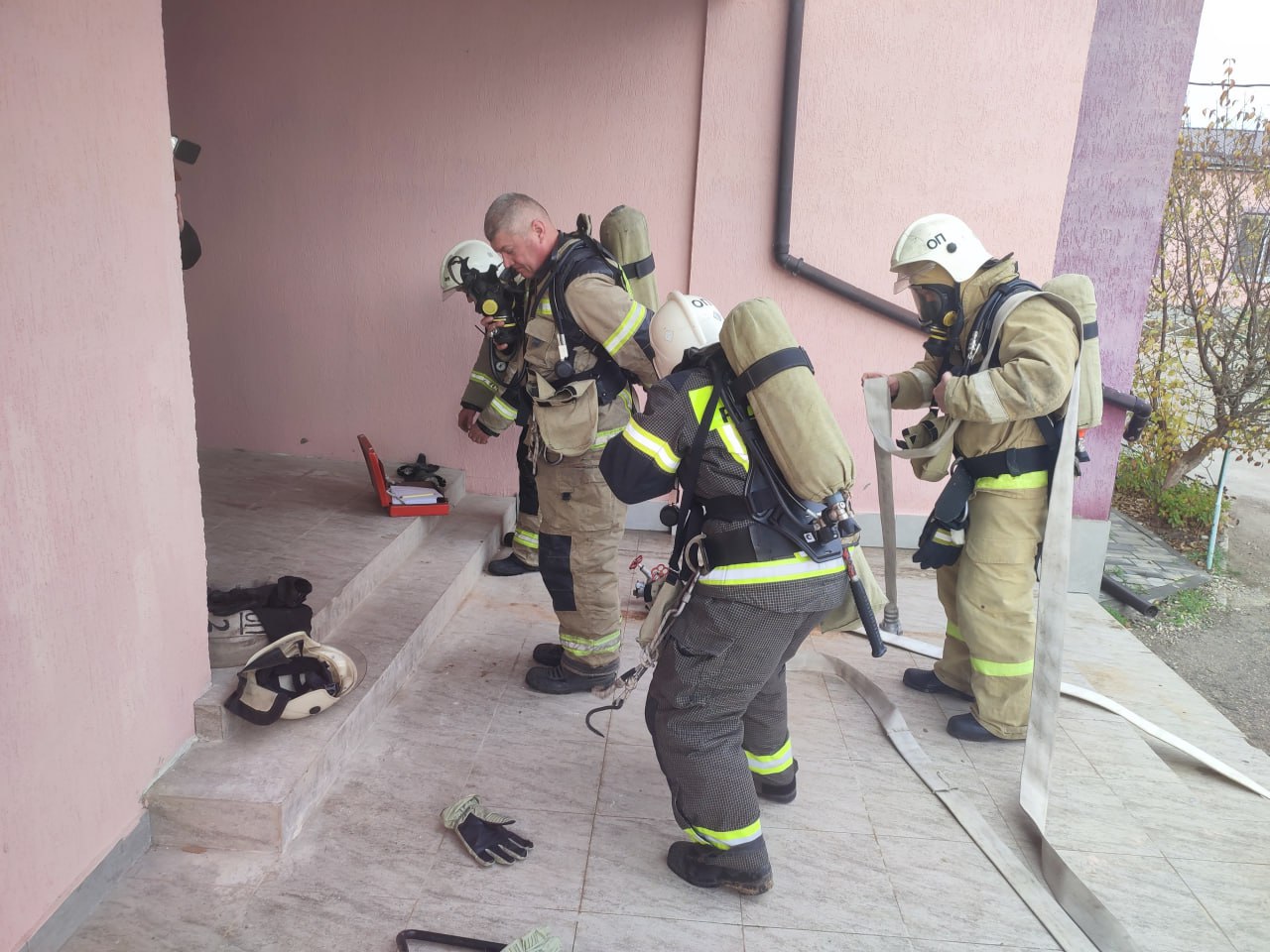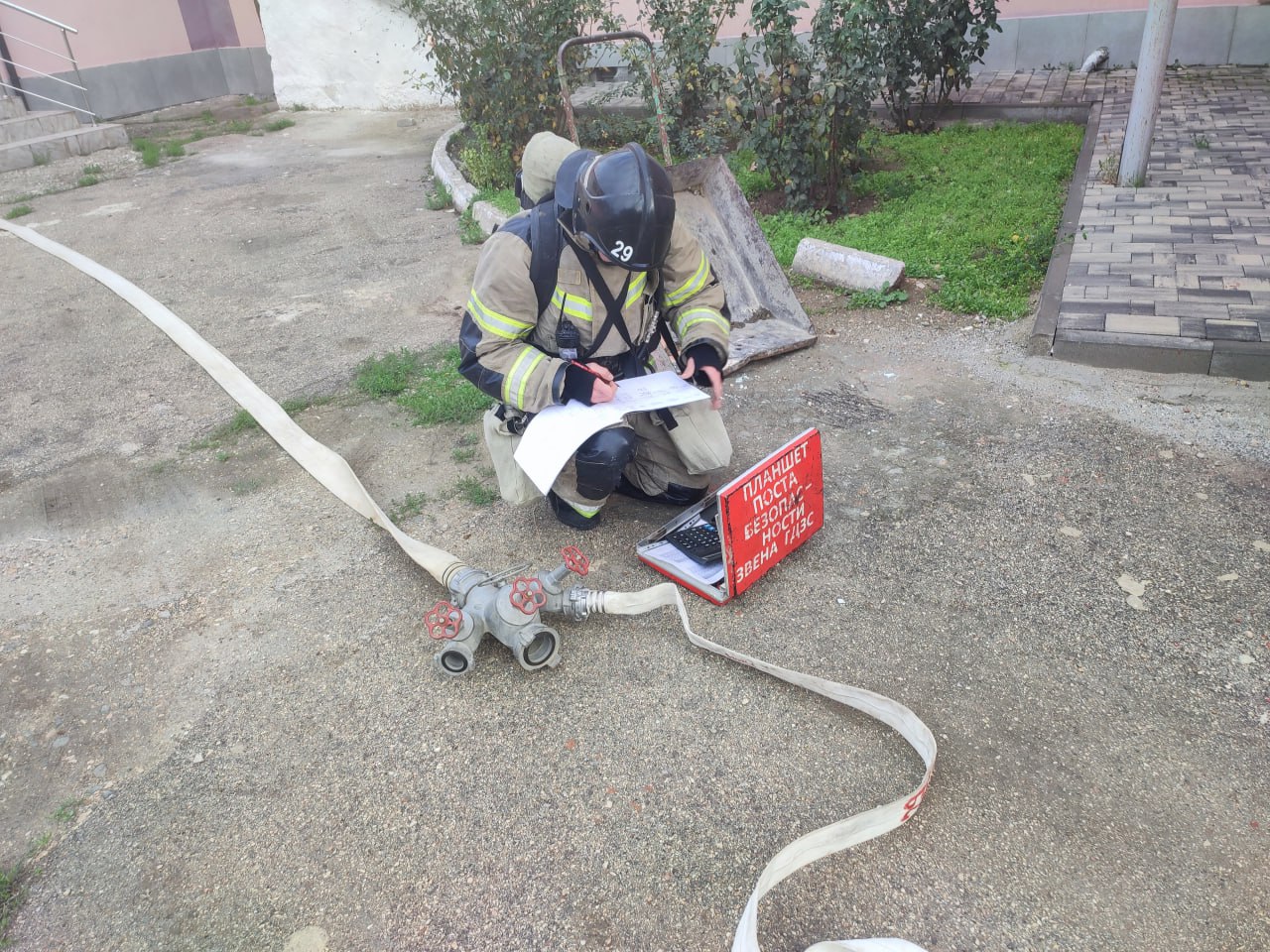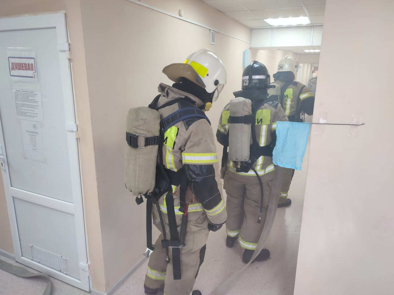 На месте условного происшествия был развёрнут штаб пожаротушения. Остальные специалисты МЧС России отработали подачу стволов на тушение и защиту смежных помещений.