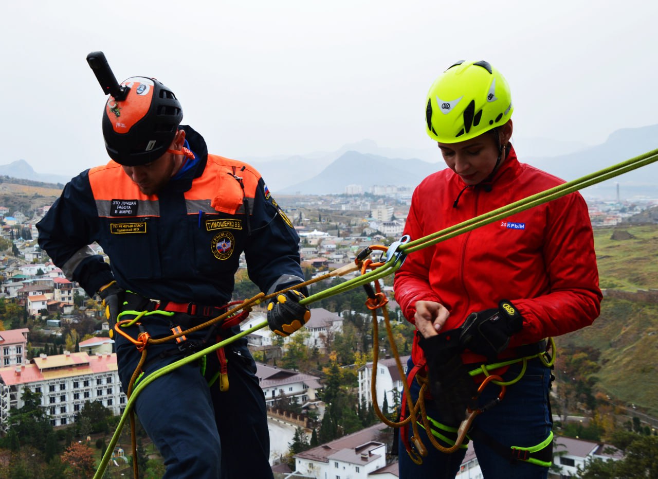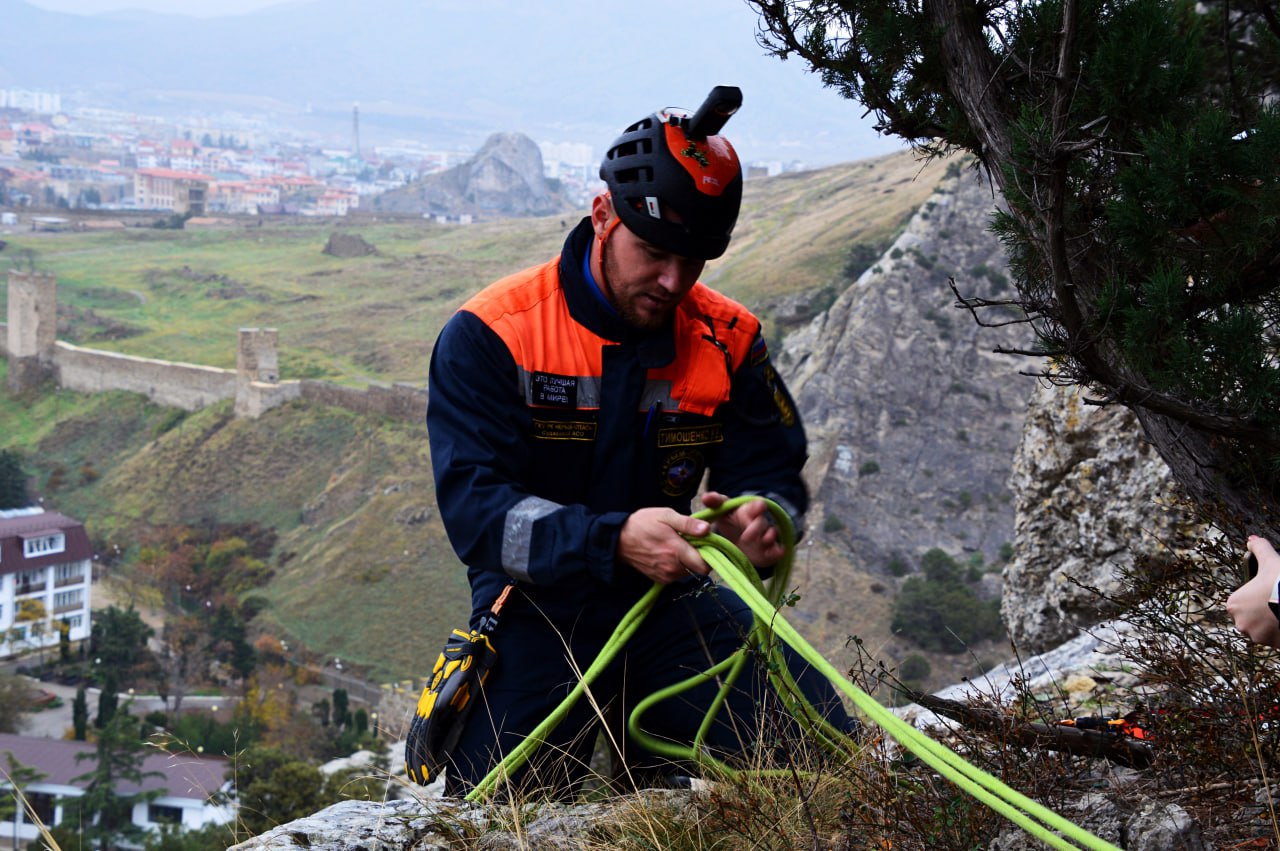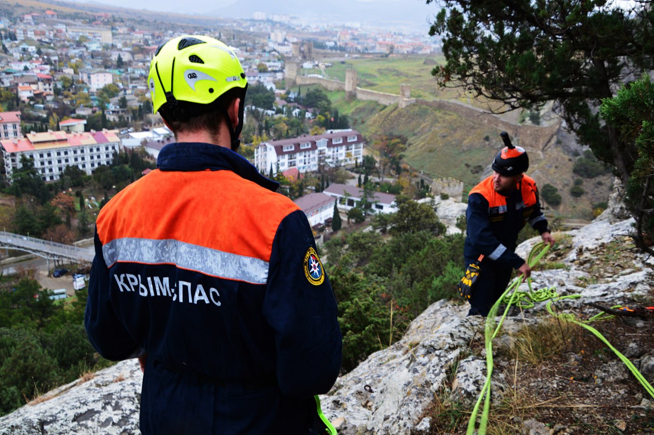 Сотрудники подведомственного учреждения МЧС Республики Крым — Судакского аварийно-спасательного отряда ГКУ РК "КРЫМ-СПАС" провели учебно-тренировочное занятие по спуску пострадавшей с горы Палвани-Оба.