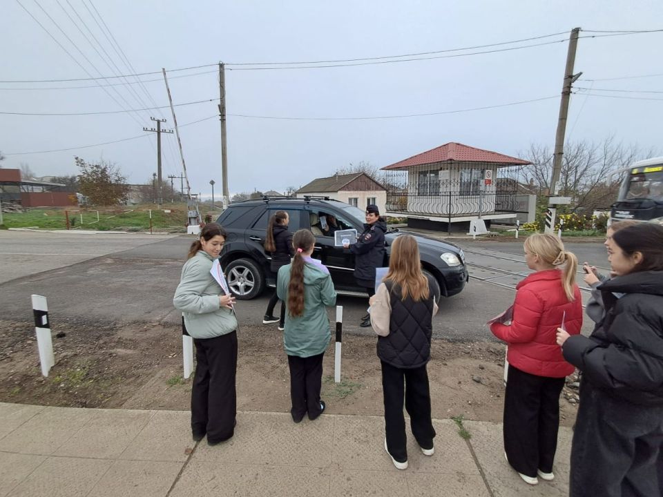 В рамках акции инспектор по делам несовершеннолетних линейного отдела совместно с учащимися школы № 10 им. Героя Советского Союза И.Е. Петрова подготовили тематические плакаты и информационные памятки, после чего вышли к одному из железнодорожных переездов города, чтобы пообщаться с водителями и пассажирами.