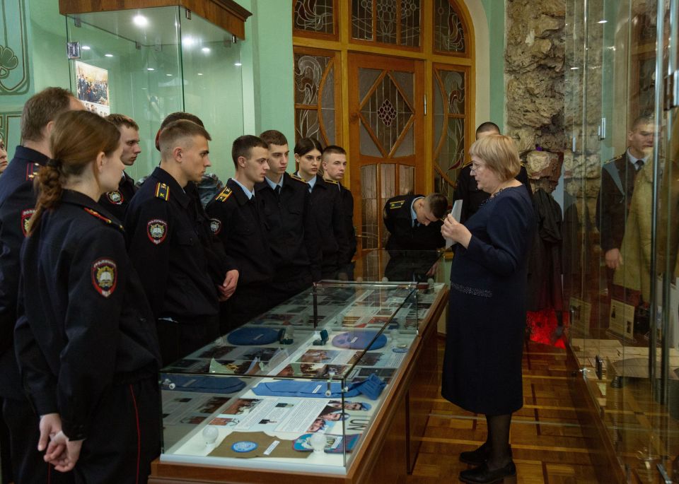 В Министерстве внутренних дел по Республике Крым прошла экскурсия по постоянно действующей экспозиции для курсантов Крымского филиала Краснодарского университета МВД России. Это мероприятие стало частью программы по профессионально-патриотическому воспитанию будущих сотрудников органов внутренних дел.