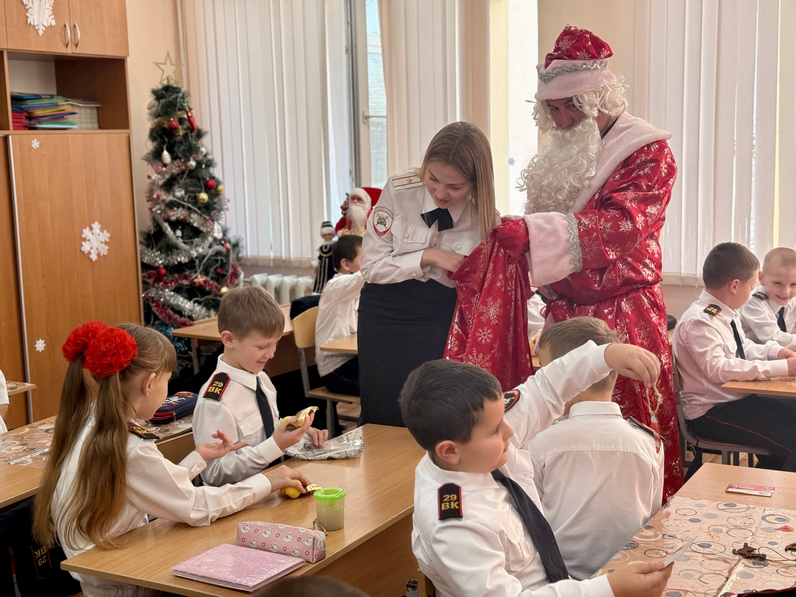 Сотрудники управления Госавтоинспекции МВД по Республике Крым совместно с Дедом Морозом (в роли которого выступил известный общественный деятель и руководитель автошколы Дмитрий Новиков), провели незабываемое мероприятие для кадетского класса МБОУ «СОШ № 29 им. Г.К. Жукова».