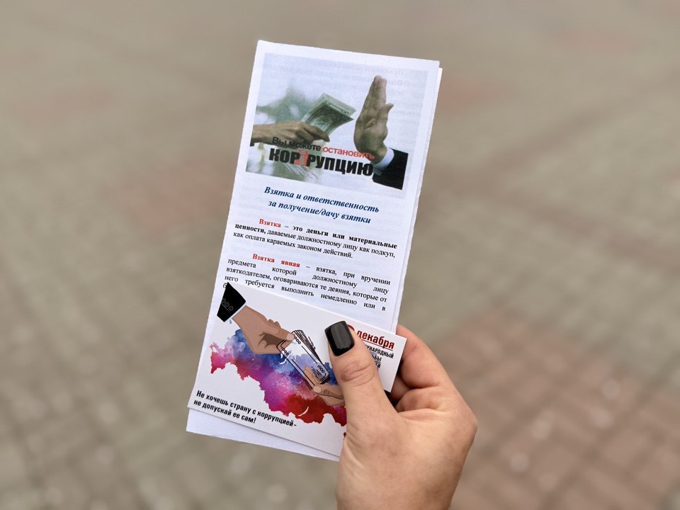 В рамках этой инициативы полицейские распространяли информационные буклеты с призывами к активной позиции в борьбе с коррупцией и разъяснениями о юридической ответственности за подобные деяния.