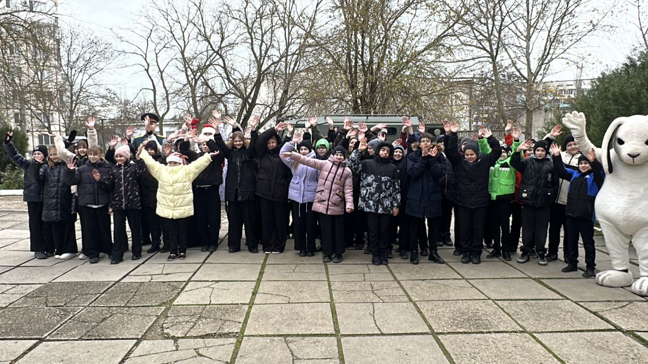 Далее военнослужащие посетили кадетские классы Росгвардии в школе № 23 города-героя Керчь. Дети встретили главного волшебника страны и гостей праздничным хороводом у парадных дверей школы, участвовали в конкурсах и играх, поздравляли друг друга с наступающими праздниками.