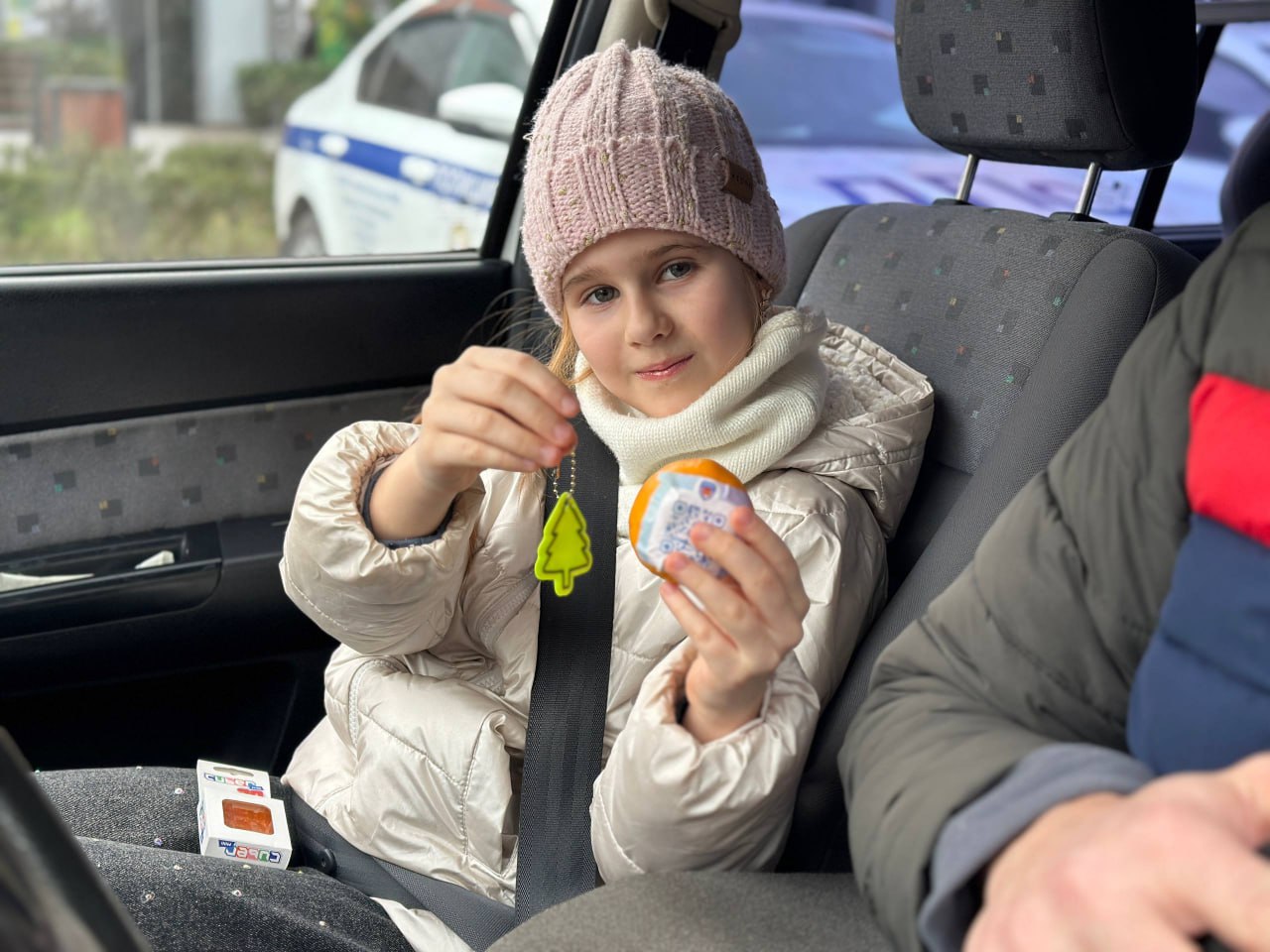 В рамках мероприятия полицейские вручили водителям памятные листовки, световозвращающие брелоки и мандарины – главный символ новогодних праздников. Каждый ребенок, перевозимый по правилам безопасности, получил от полицейских памятные подарки.