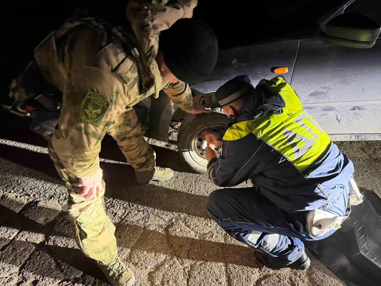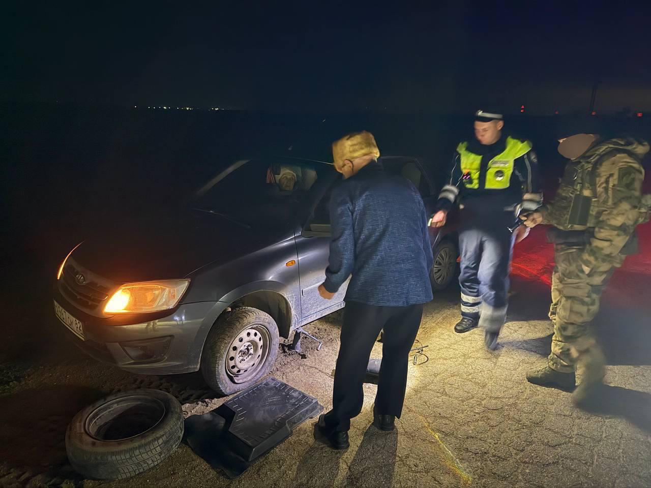 Сотрудники Госавтоинспекции и Росгвардии помогли супружеской паре в замене пробитого колеса. Пенсионер выразил искреннюю благодарность и продолжил движение домой.