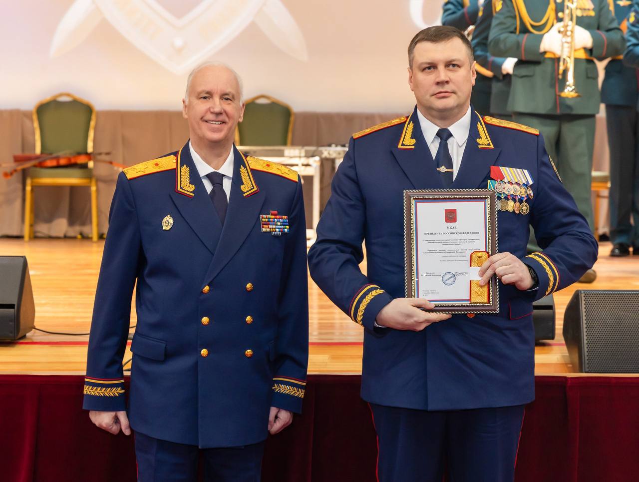 Затем состоялась церемония награждения. Объявлен Указ Президента РФ о присвоении ряду сотрудников высших специальных званий и воинских званий высших офицеров. Особо отличившиеся офицеры и ветераны следствия отмечены государственными и ведомственными наградами.