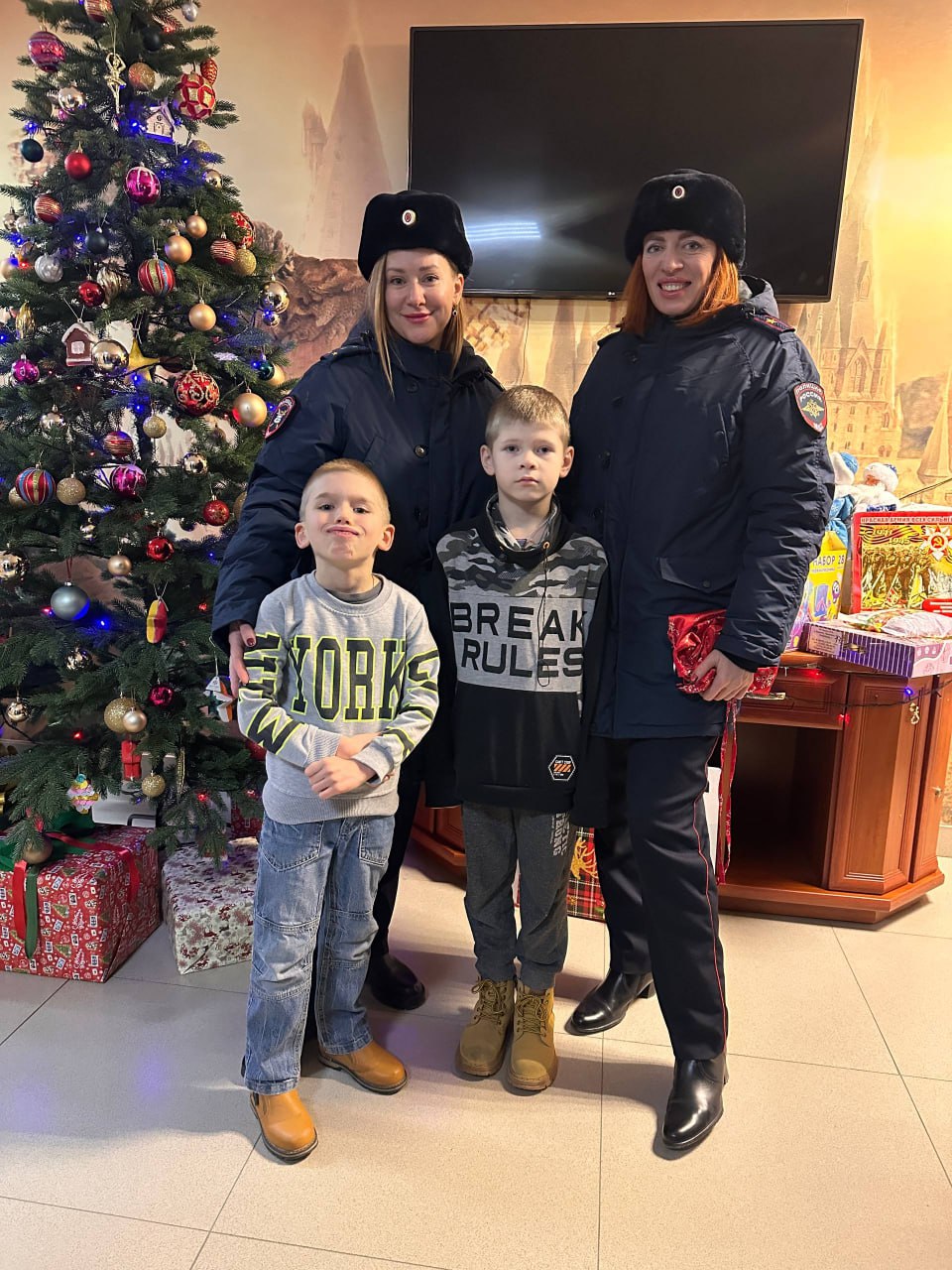 Севастопольские полицейские вместе с представителями мотосообщества поздравили с крещенскими праздниками воспитанников городского социального приюта