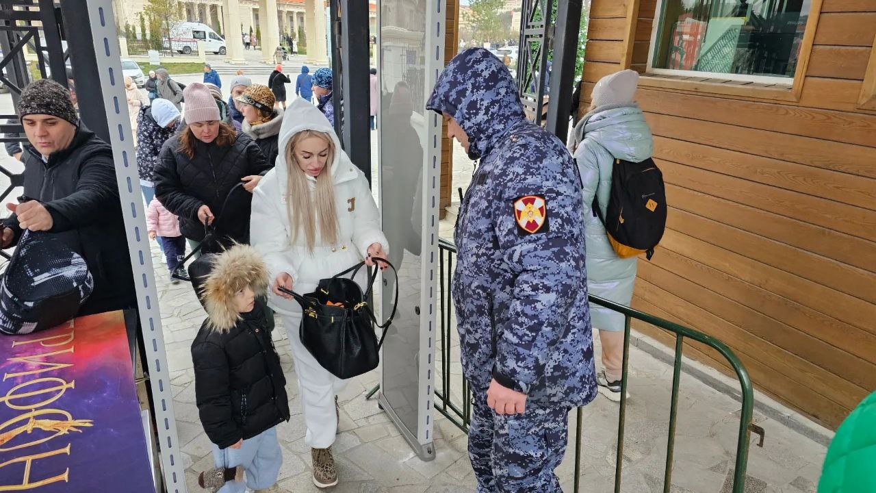 Бойцы инженерно-технических отделов ОМОН Росгвардии с помощью специальных средств заблаговременно обследовали места проведения богослужений и религиозных обрядов, а также массового пребывания людей на наличие подозрительных предметов.