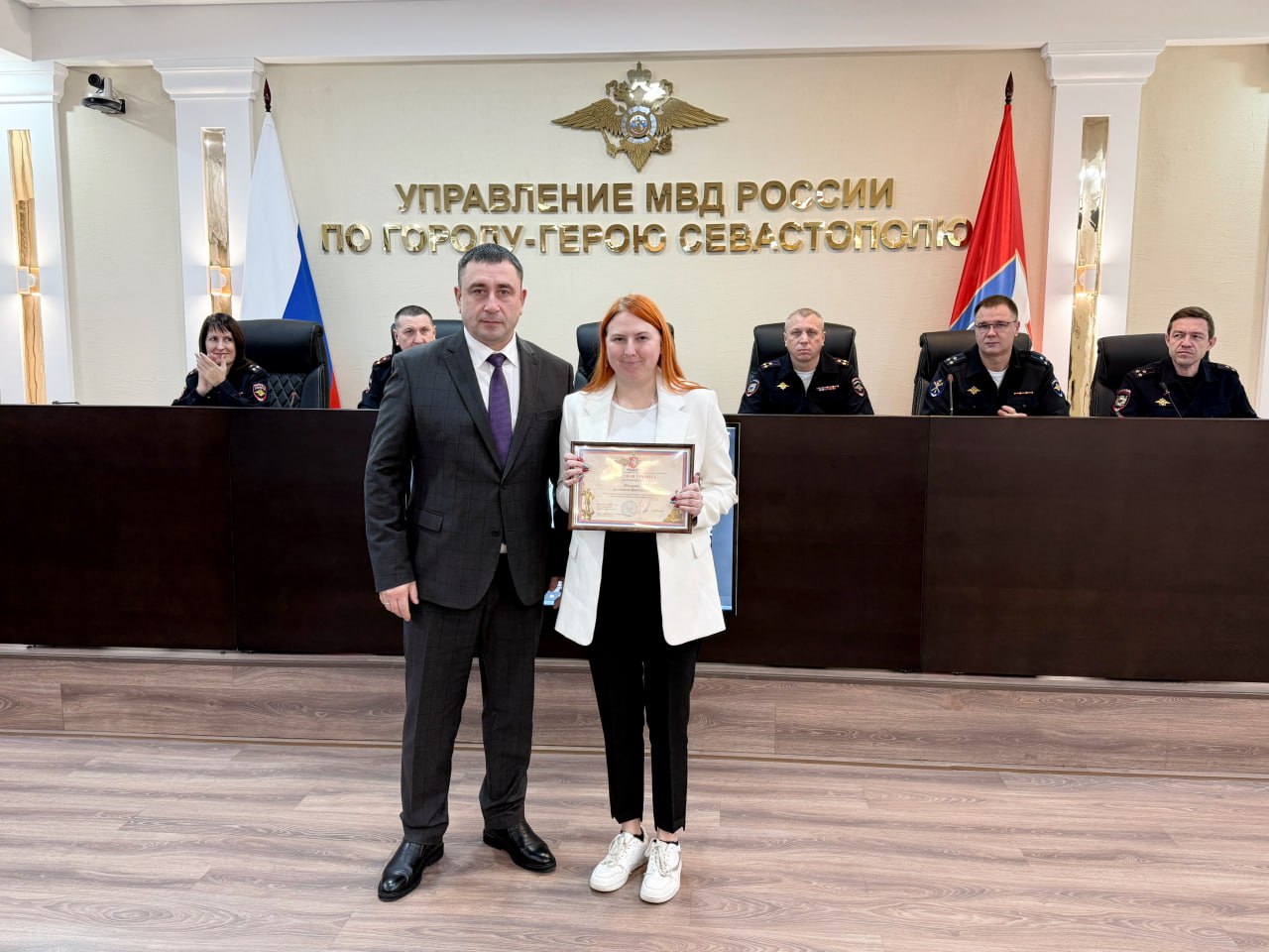 В УМВД России по г.Севастополю состоялось торжественное вручение ведомственных наград сотрудникам делопроизводства и режима, приуроченное к 223-летию со дня образования службы в системе Министерства внутренних дел России.