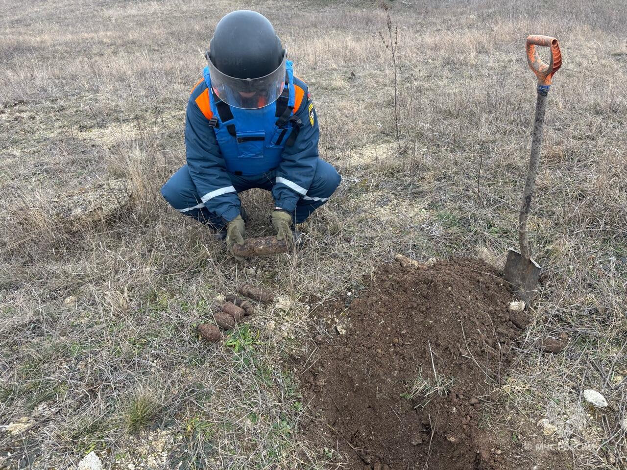 Пиротехниками Специального морского отряда ГУ МЧС России по Республике Крым в ГО Керчь и Ленинском районе было уничтожены 6 взрывоопасных предметов (3 артиллерийских снаряда, 3 ручные гранаты) и 571 единица стрелковых боеприпасов (патроны - 7,62).