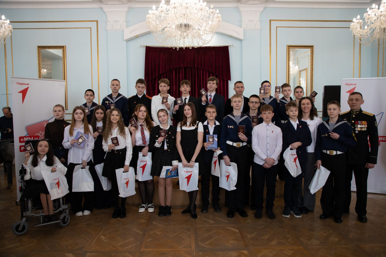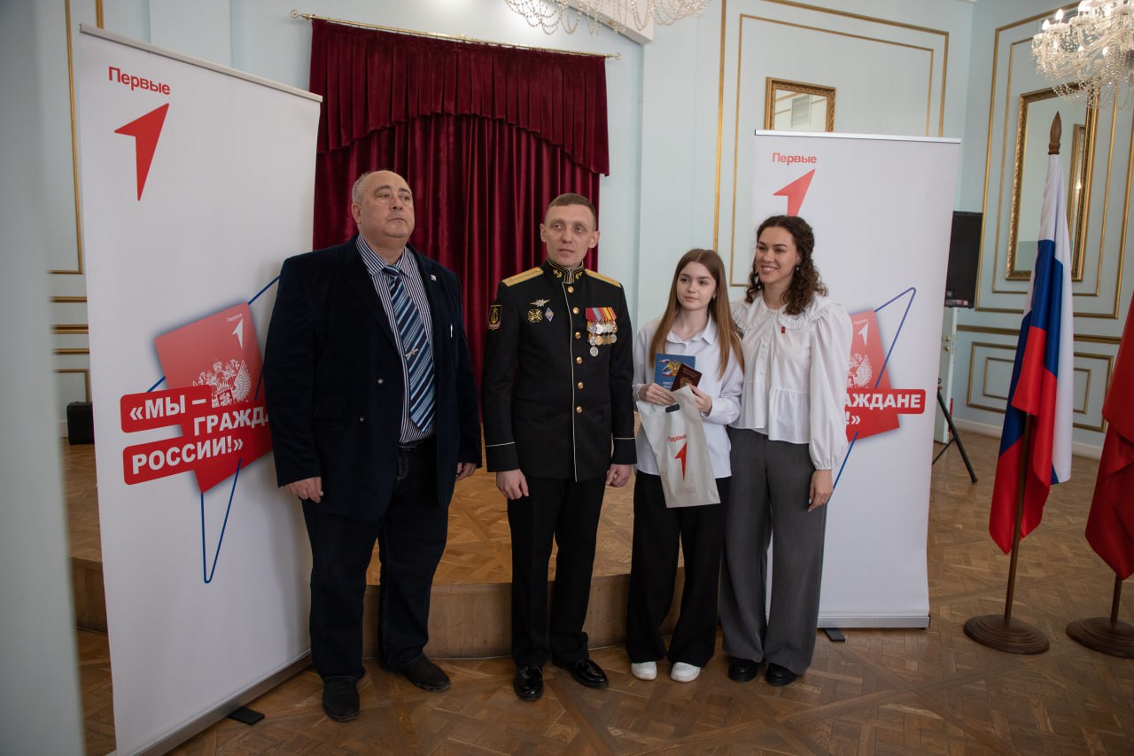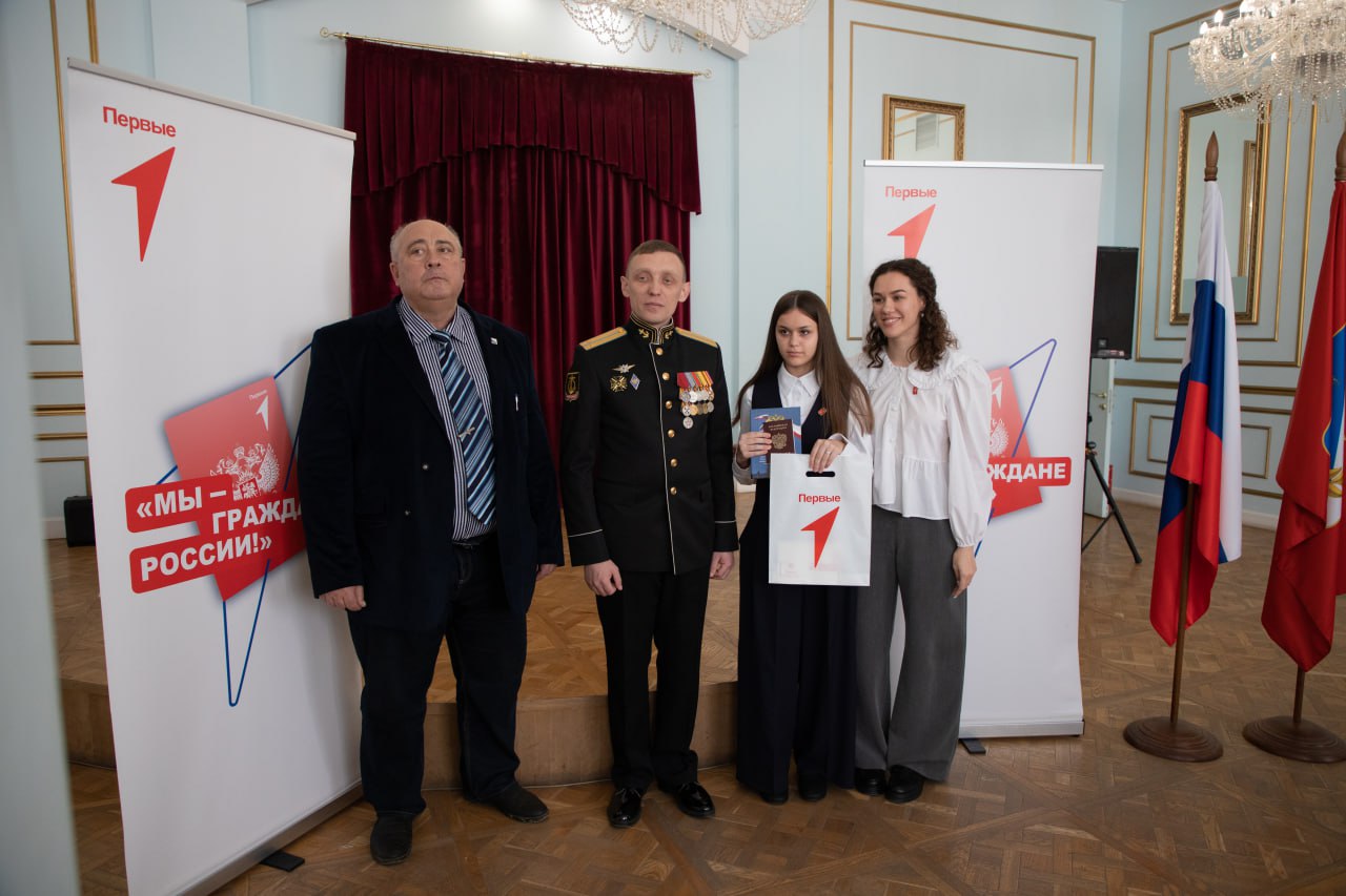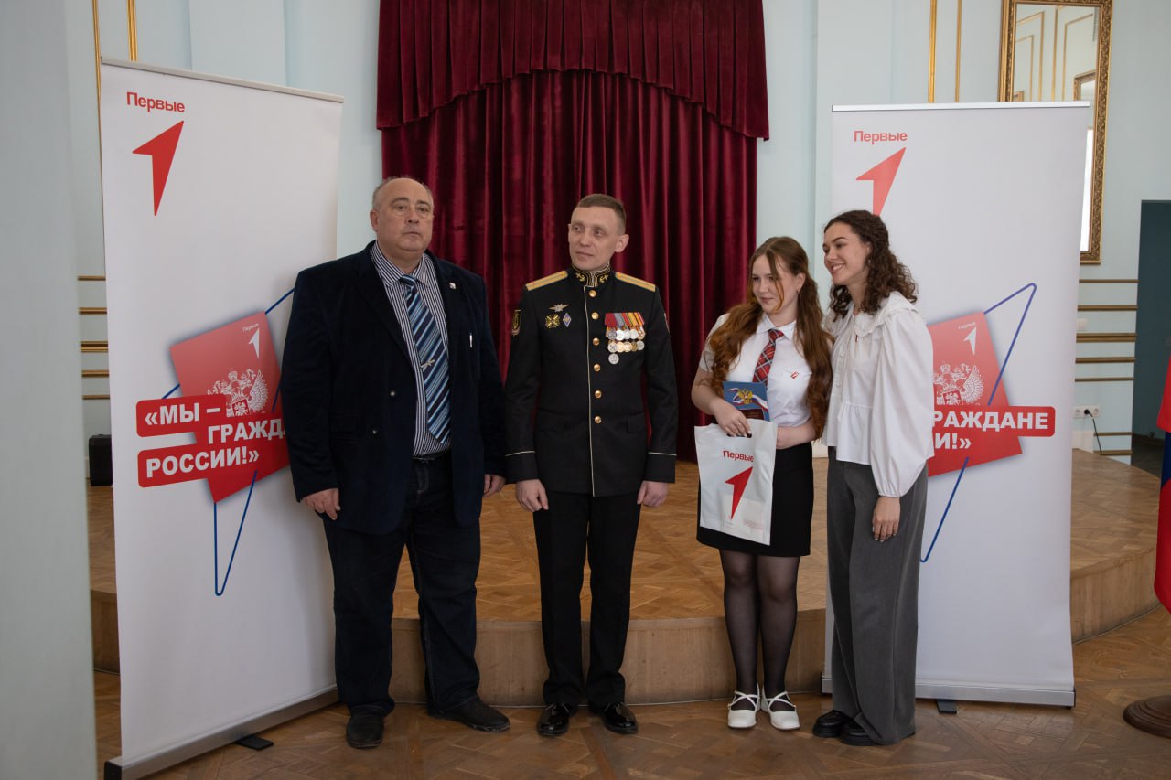 23 юных севастопольца получили свой первый в жизни главный документ из рук председателя Общественного совета при УМВД России по г.Севастополю Владимира Клюева, лектора общества «Знание», представителя Ассоциации ветеранов СВО Егора Тимофеева и председателя совета регионального отделения общественно-государственного движения детей и молодежи «Движение Первых» Севастополя Марины Цветинской.