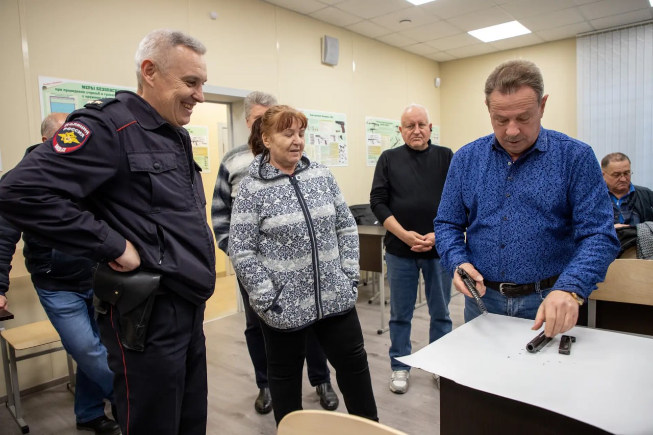 В учебном классе под руководством опытных инструкторов гости получили возможность вспомнить былые времена и потренироваться в неполной сборке и разборке легендарного пистолета Макарова. Эти упражнения, знакомые каждому сотруднику ОВД, вызвали живой отклик и неподдельные эмоции. Пенсионеры делились друг с другом, а также с действующими сотрудниками, опытом и историями со времен своей службы, сравнивая навыки и подходы разных поколений.