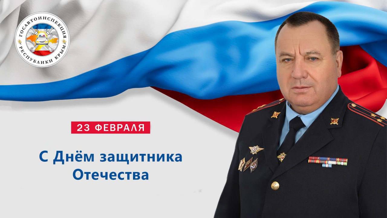 От личного состава управления Госавтоинспекции МВД по Республике Крым и меня лично примите самые искренние поздравления с Днём защитника Отечества!