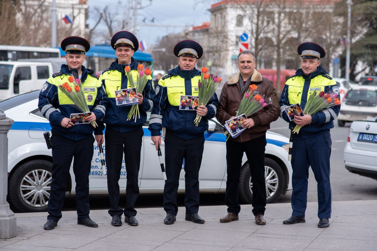 В преддверии 8 марта автоинспекторы совместно с членом Общественного совета при УМВД России по г.Севастополю Юрием Оболенским провели традиционную акцию «Цветы для автоледи» и подарили девушкам-водителям настоящий праздник на дороге.