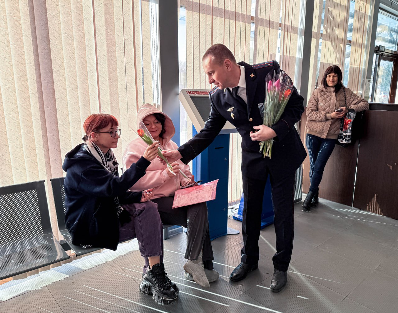 «8 марта в каждый дом»: в Севастополе сотрудники миграционных подразделений полиции поздравили посетительниц с наступающим праздником