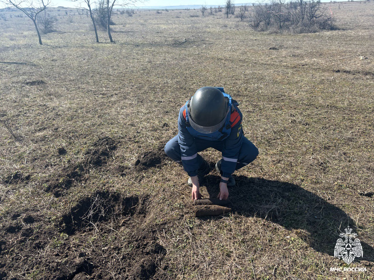 Пиротехниками Специального морского отряда ГУ МЧС России по Республике Крым в Ленинском районе было уничтожено 6 взрывоопасных предметов (6 артиллерийских снарядов).