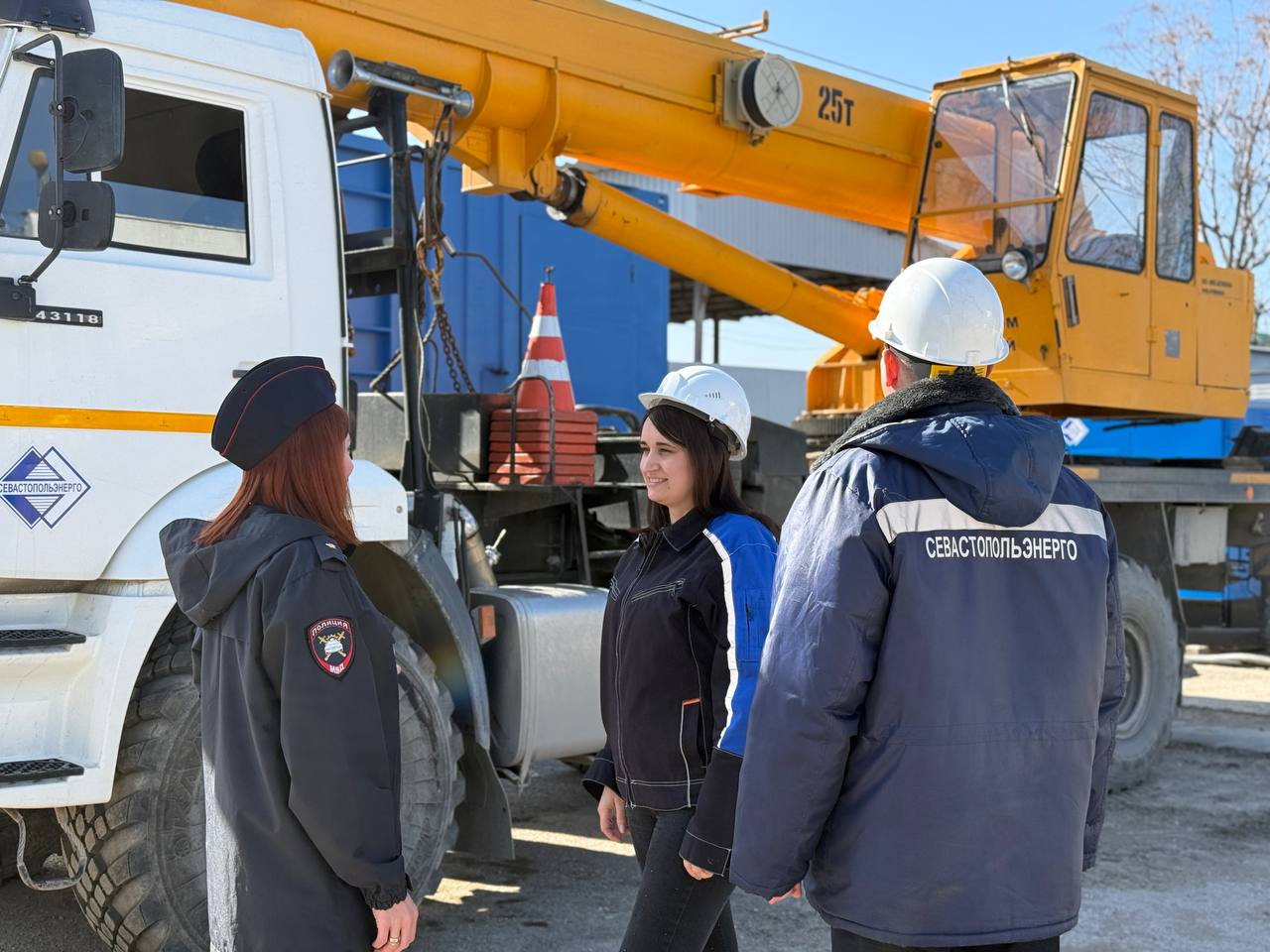 Сотрудники Госавтоинспекции Севастополя встретились с работниками «Севастопольэнерго», эксплуатирующими служебные автомобили и спецтехнику, в том числе автоподъемники, автокраны, самоходные машины и экскаваторы-погрузчики.