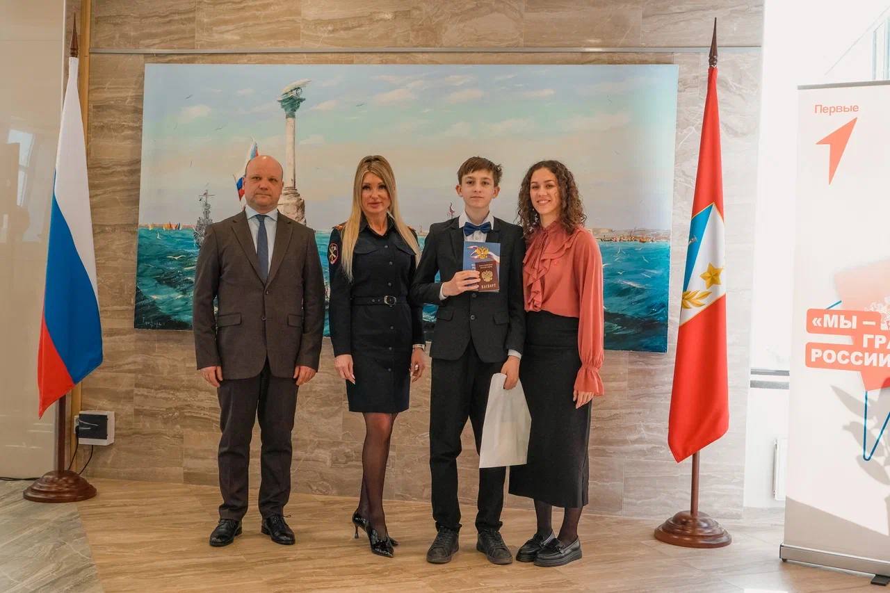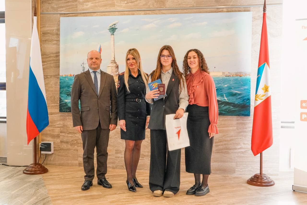 В торжественной церемонии приняли участие заместитель Губернатора г. Севастополя Игорь Михеев, начальник отдела по работе с гражданами Российской Федерации УВМ УМВД России по г. Севастополю подполковник полиции Мария Шульга и председатель регионального отделения общественно-государственного движения детей и молодежи «Движение Первых» Севастополя Марина Цветинская.