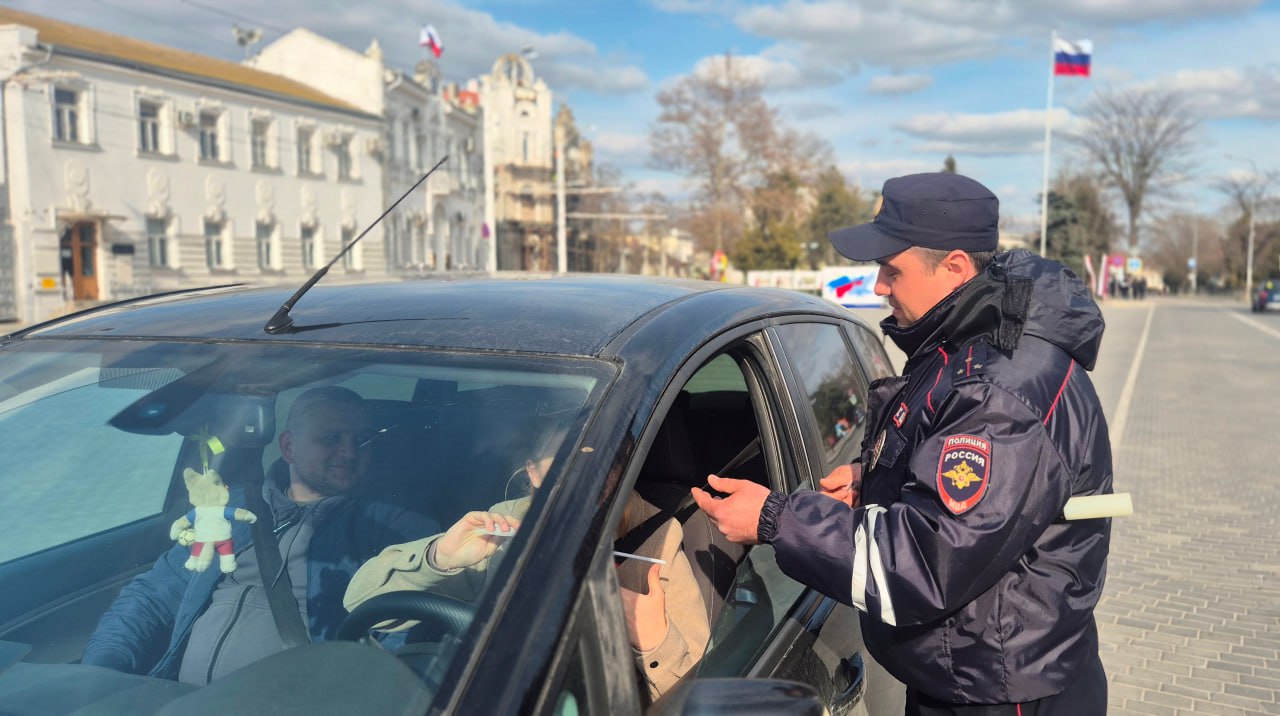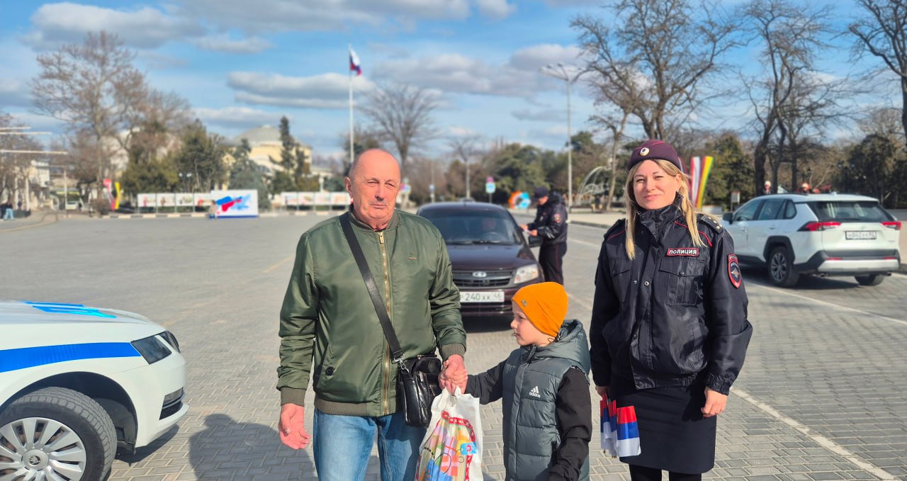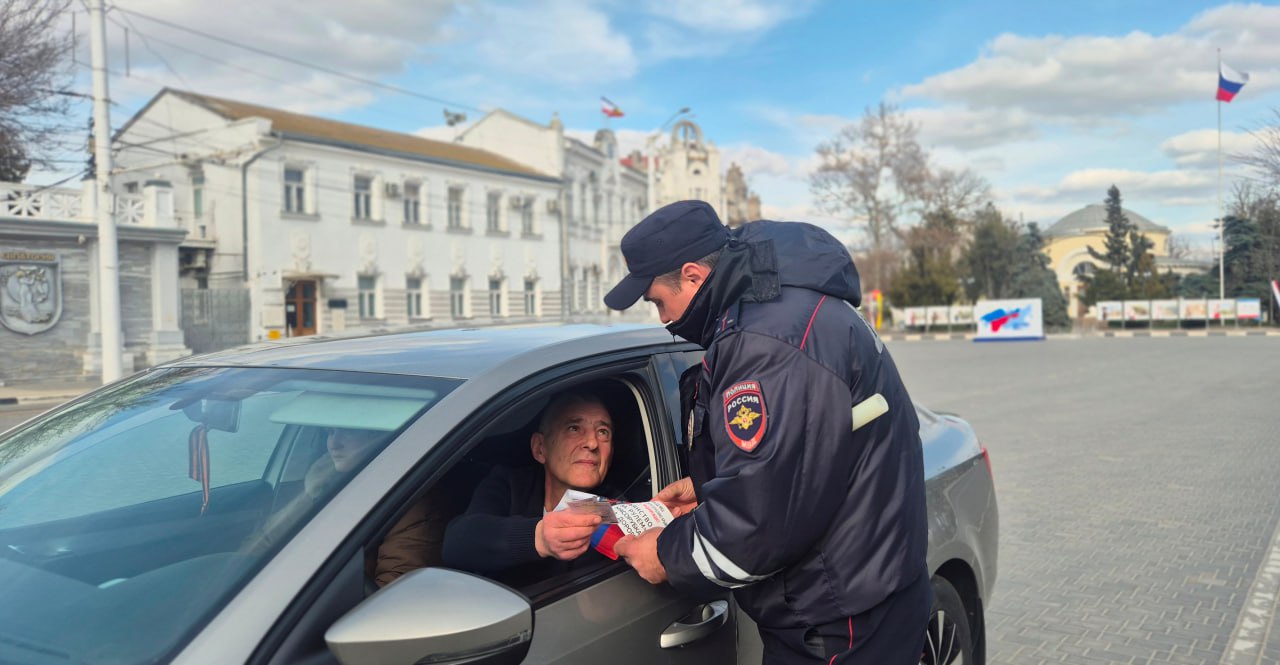 Сотрудники Госавтоинспекции Евпатории поздравили водителей с 12 годовщиной воссоединения Крыма с Россией