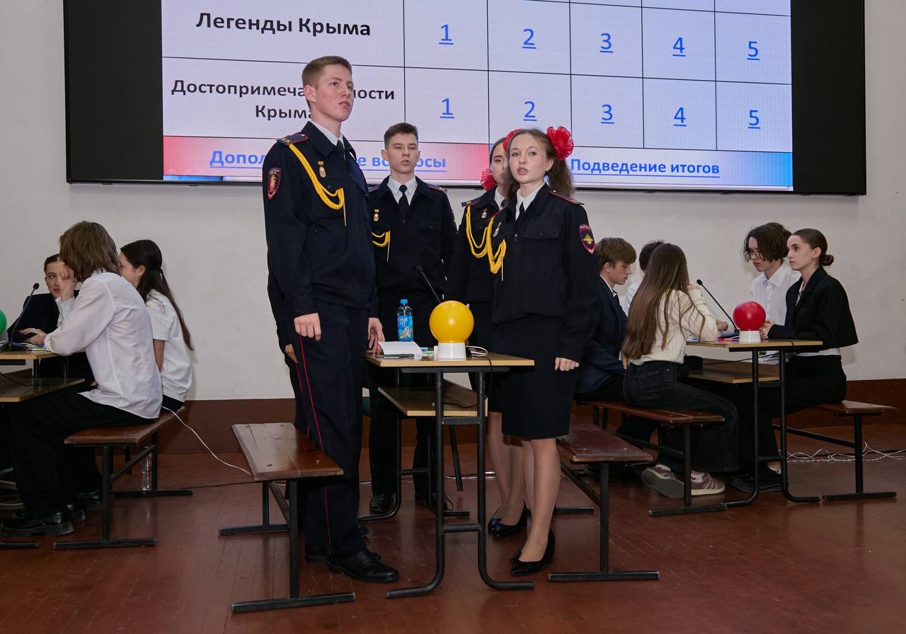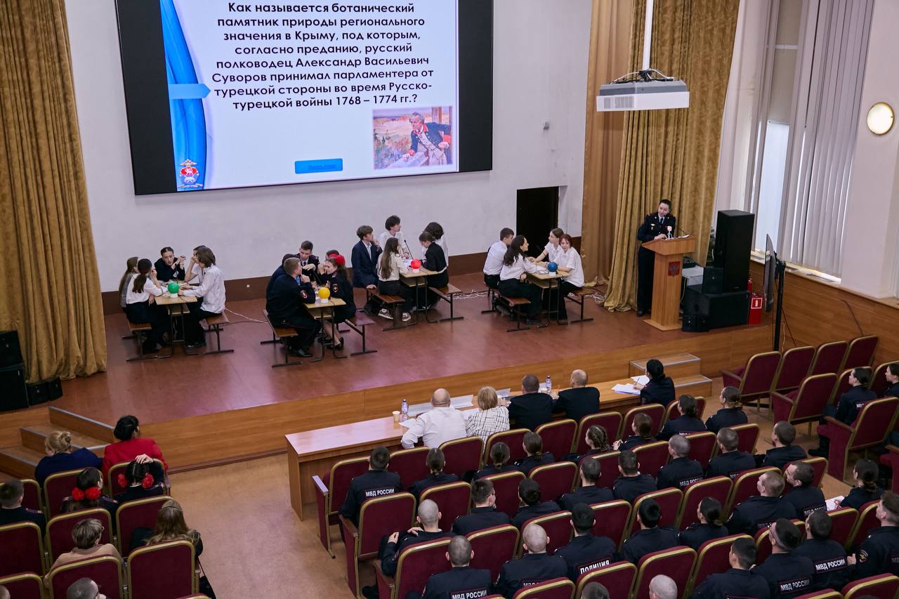 В Крымском филиале Краснодарского университета МВД России прошла традиционная интеллектуальная викторина, приуроченная к 12-й годовщине воссоединения Крыма с Россией. В ней приняли участие старшеклассники и кадеты из различных школ полуострова.